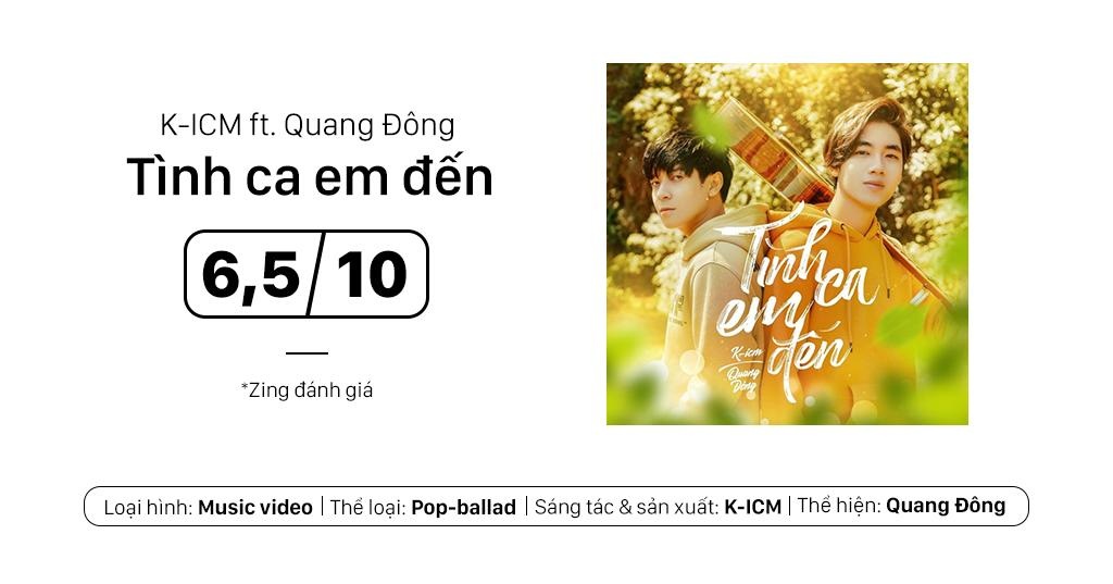 Tuy nhiên, với MV mới nhất mang tên Tình ca em đến, K-ICM lần đầu sáng tác riêng một ca khúc cho cộng sự Quang Đông. Trước đó, nam producer luôn gây hoài nghi về khả năng làm nhạc sĩ dù từng là tác giả của ca khúc Em đã từng, ra mắt cách đây 2 năm.