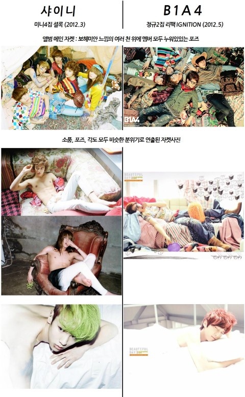 Hoặc như bài Dream Girl của nhóm SHINee thì phía nhà sản xuất sau đó đã dùng hết lý lẽ về chuyên môn để phân tích nhưng họ vẫn phải thừa nhận có những nét tương đồng ở những giai điệu đầu tiên.