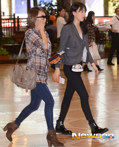 Nicole và Jiyoung đi tách biệt so với 3 thành viên còn lại.