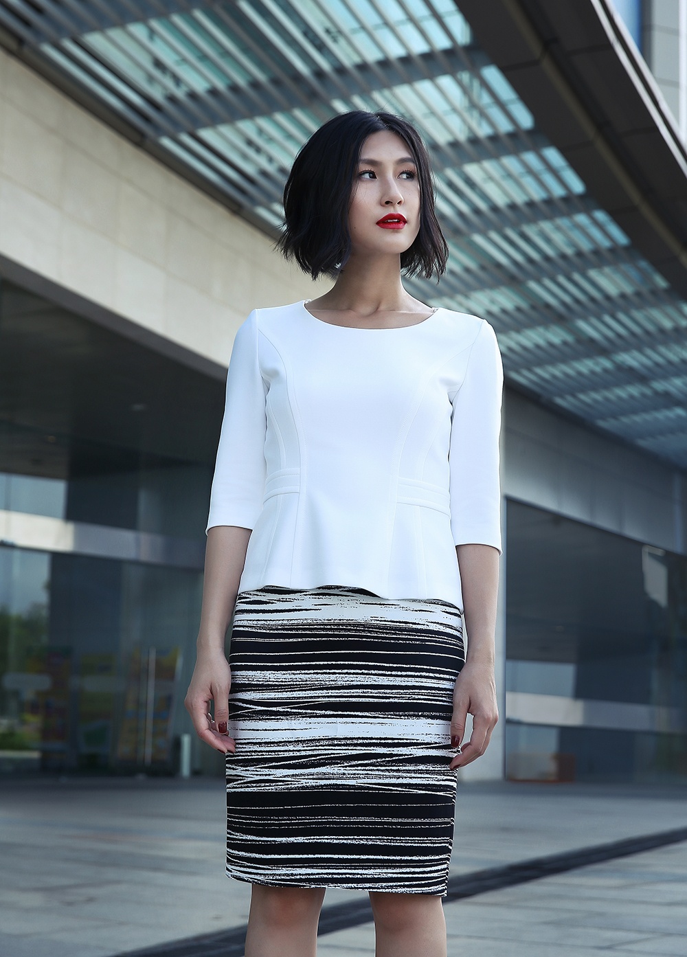 | Trong bộ ảnh mới này, Kathy Uyên mặc các thiết kế mới nhất của Jason Wu (thương hiệu Hugo Boss). |