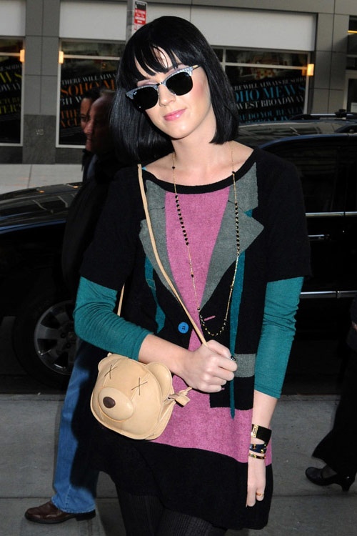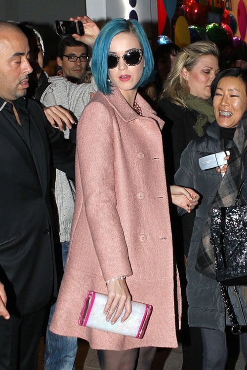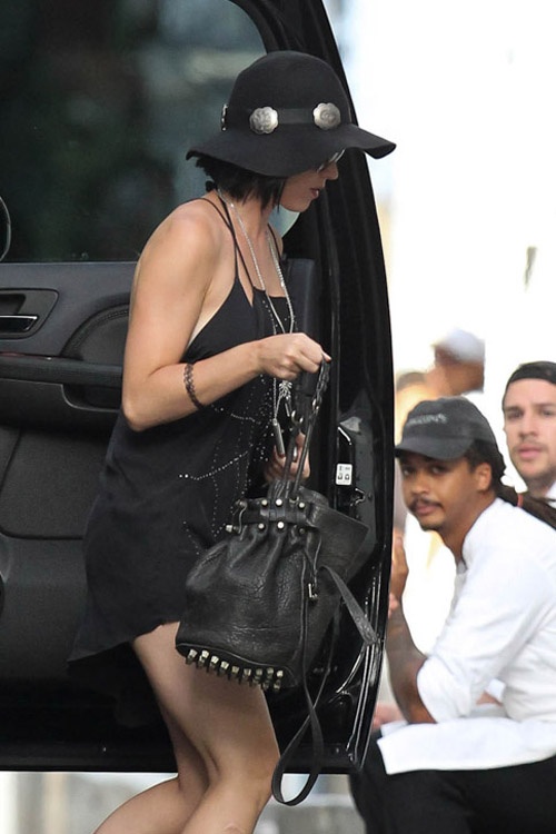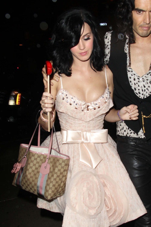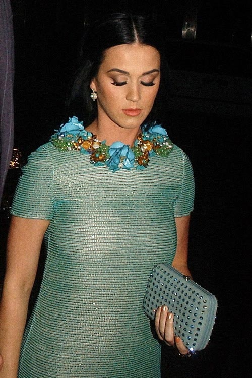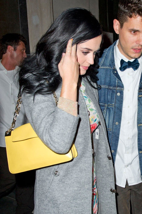| Thêm một minh chứng cho gu thời trang nữ tính và gợi của Katy, trên tay cô là chiếc ví đẹp của Edie Parker. |