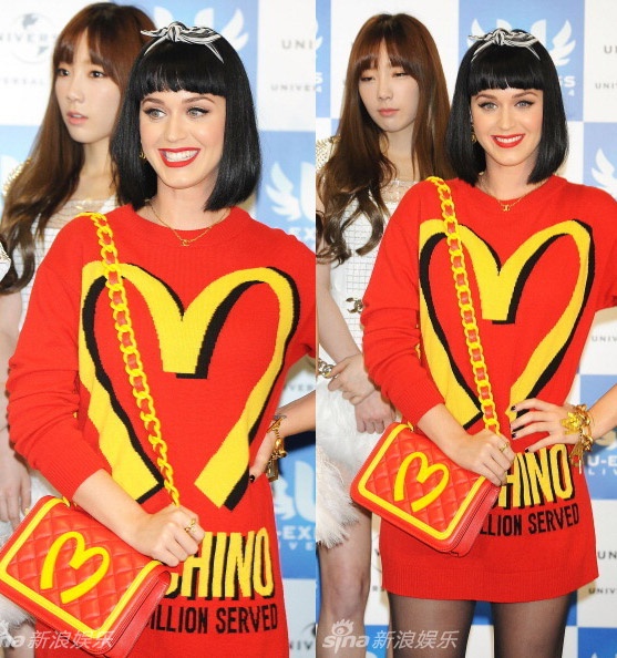 Diện váy trắng ngắn, SNSD vẫn xinh đẹp và đáng yêu như thường lệ. Tuy nhiên, lối trang điểm tự nhiên cùng vẻ ngoài trong sáng của các cô gái bỗng trở nên nhợt nhạt và có phần thiếu sức sống khi đặt cạnh một Katy Perry rực rỡ từ đầu đến chân. SNSD hoàn toàn bị cô ca sĩ đến từ nước Mỹ lấn át.