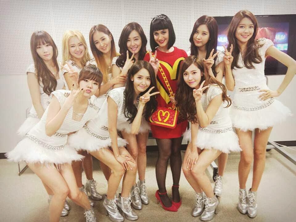 | SNSD và Katy Perry phía sau hậu trường. |