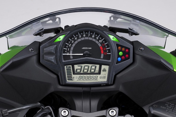 | Cụm đồng hồ hiển thị đa chức năng dạng LCD, có đèn LED chiếu sáng ban đêm. Tuy nhiên, Ninja 2014 vẫn sử dụng đồng hồ vòng tua máy dạng analog. |