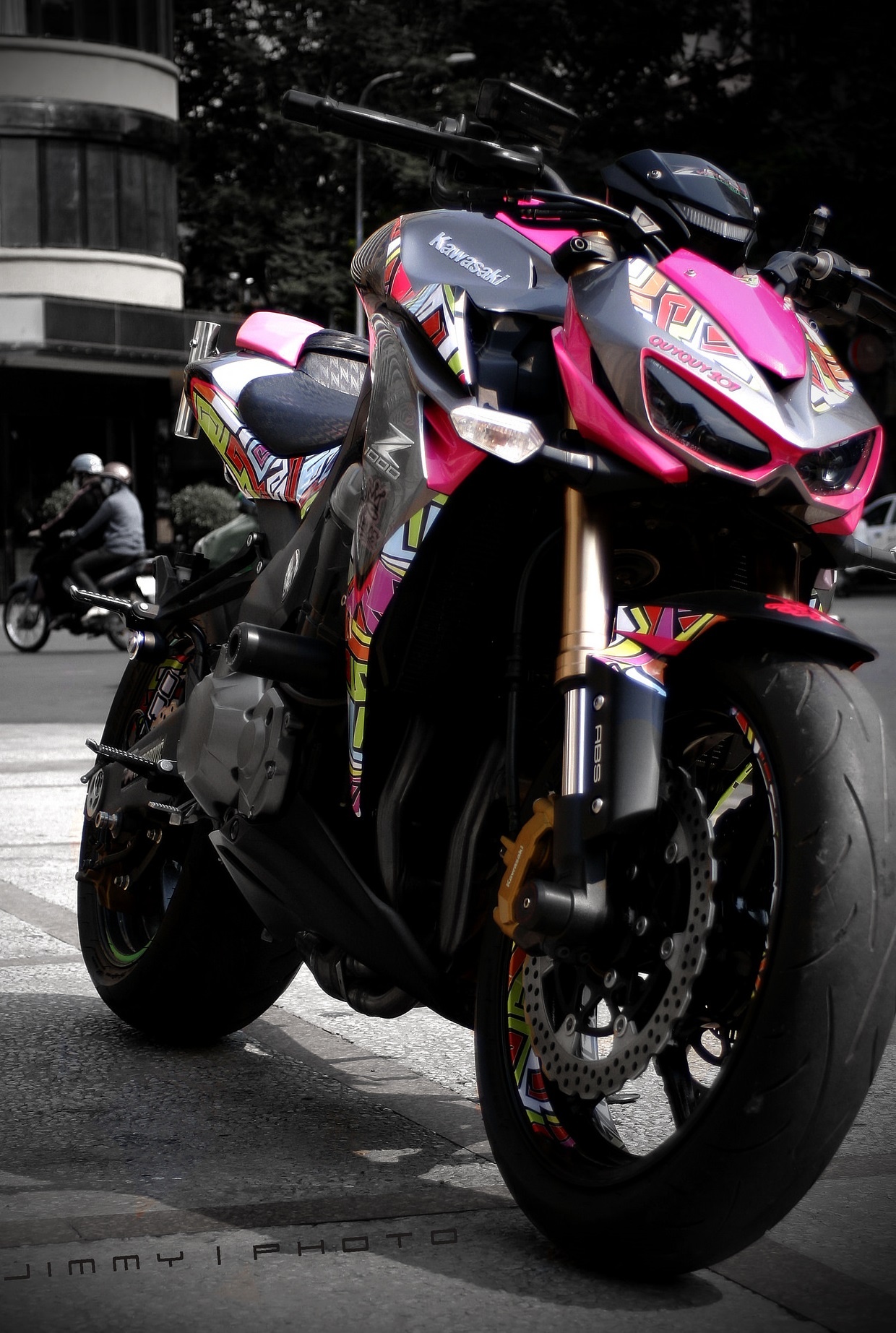 | Z1000 đời 2014 là mẫu xe được nhiều biker yêu thích, tuy nhiên, những màu phổ biến được nhiều người sử dụng là cam, xanh hoặc đen... Vì vậy, sự xuất hiện của chiếc nakedbike hầm hố trong gam màu hồng cánh sen nữ tính khiến nhiều người chú ý. |