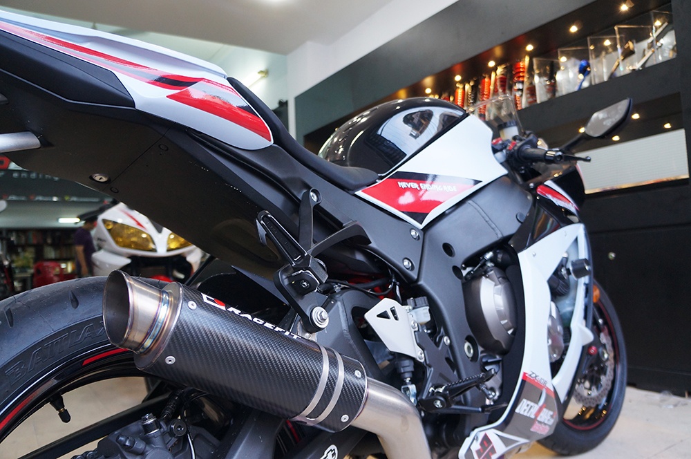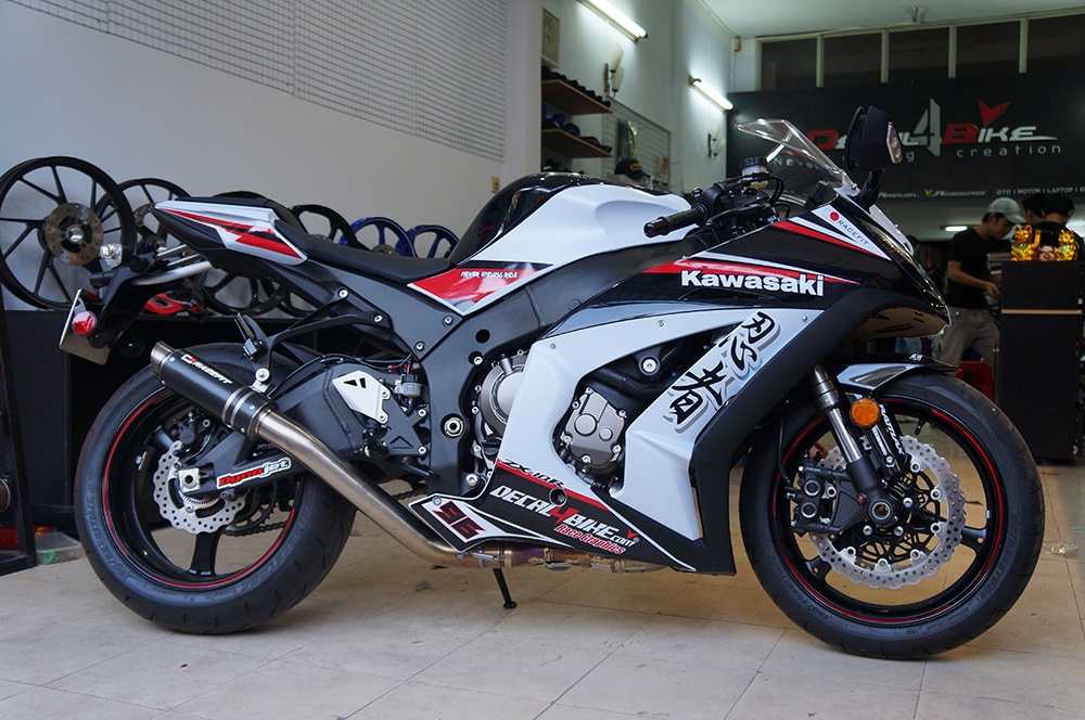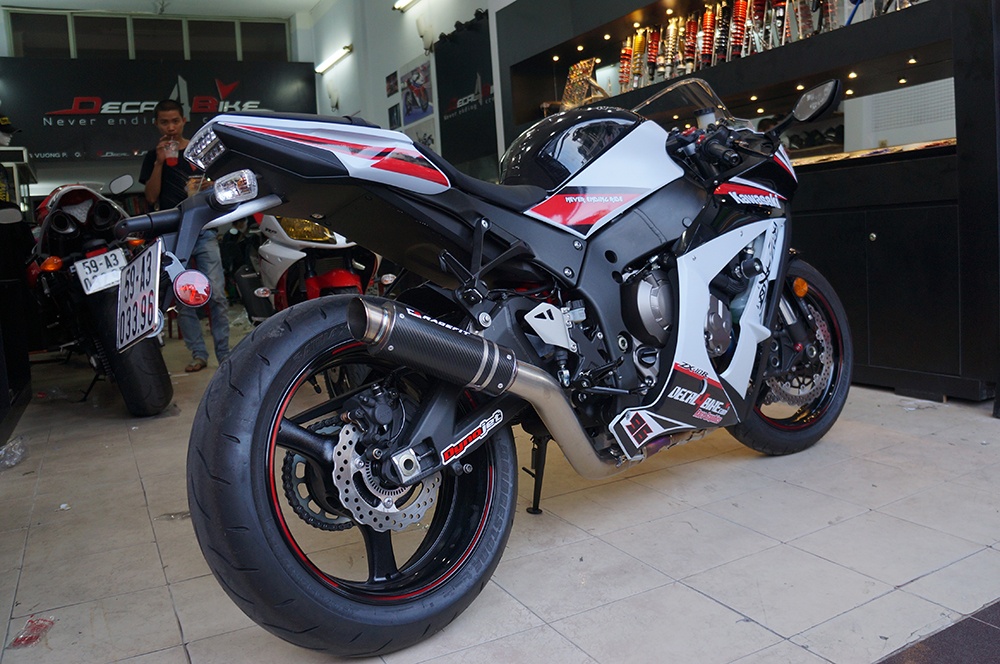 Mẫu sportbike của Kawasaki được chủ nhân trang bị nhiều loại phụ tùng mới, cùng với đó là bộ tem phong cách đậm chất Nhật Bản.