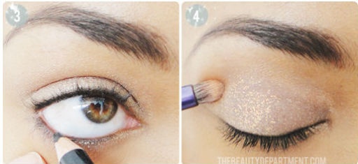 Sau khi đánh phần mắt, kẻ viền mắt như ý, dùng cọ mềm tán thêm một lớp nhũ vàng như hình vẽ.