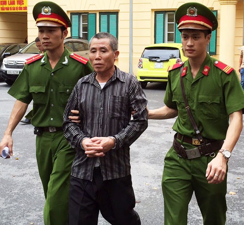 | Dẫn giải bị cáo Cửu ra xe chở phạm nhân. Ảnh: MĐ. |
