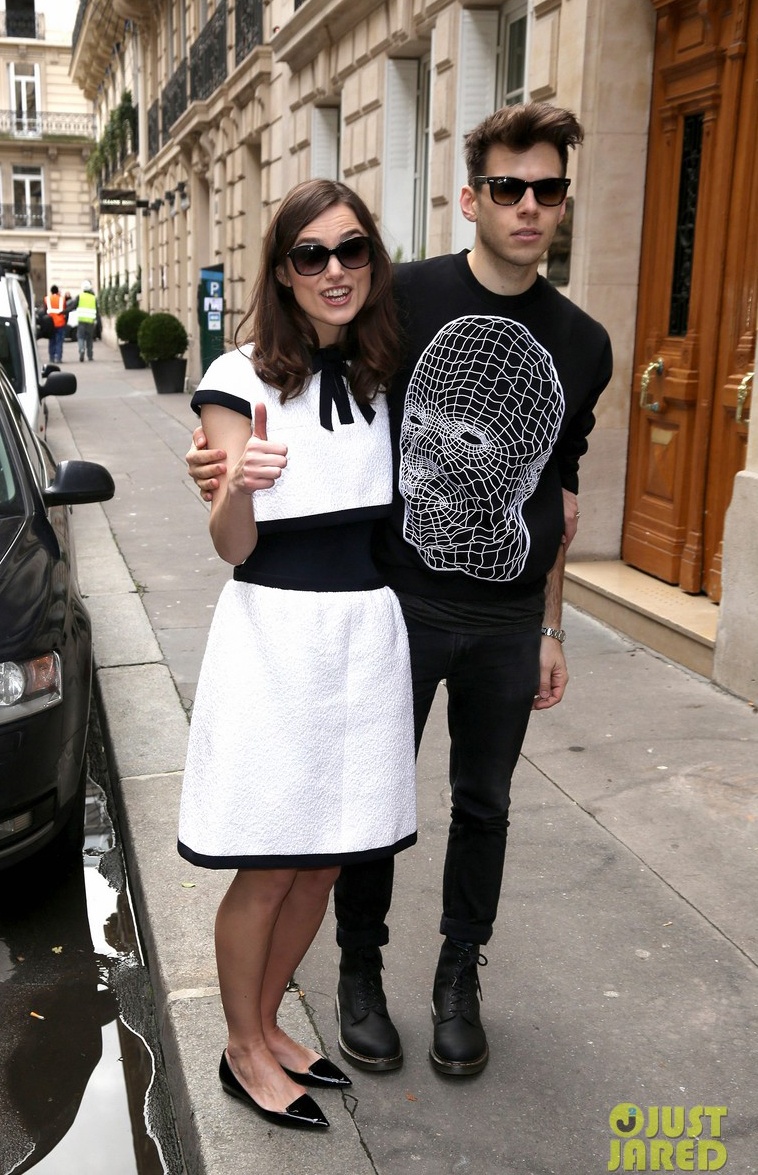Hôm qua, 4/3, Keira Knightley tham dự tuần lễ thời trang nam đang diễn ra ở Paris cùng chồng là James Righton.