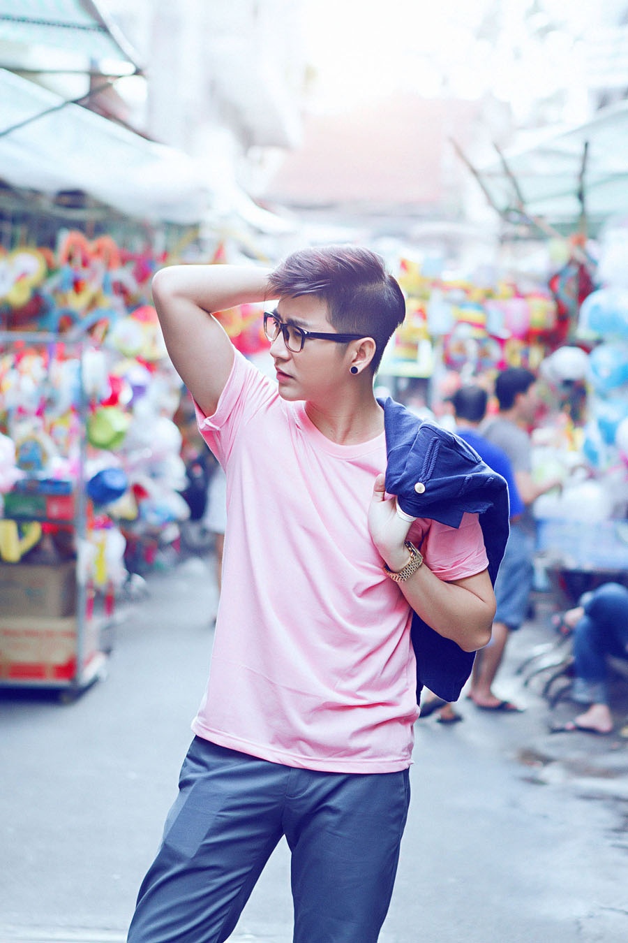 | Cặp đôi nổi bật ở một góc phố với hình ảnh trẻ trung, hiện đại. Vôn có kinh nghiệm làm người mẫu teen từ nhiều năm trước, cả hai dễ dàng kết hợp ăn ý khi thực hiện những shoot ảnh đường phố. |