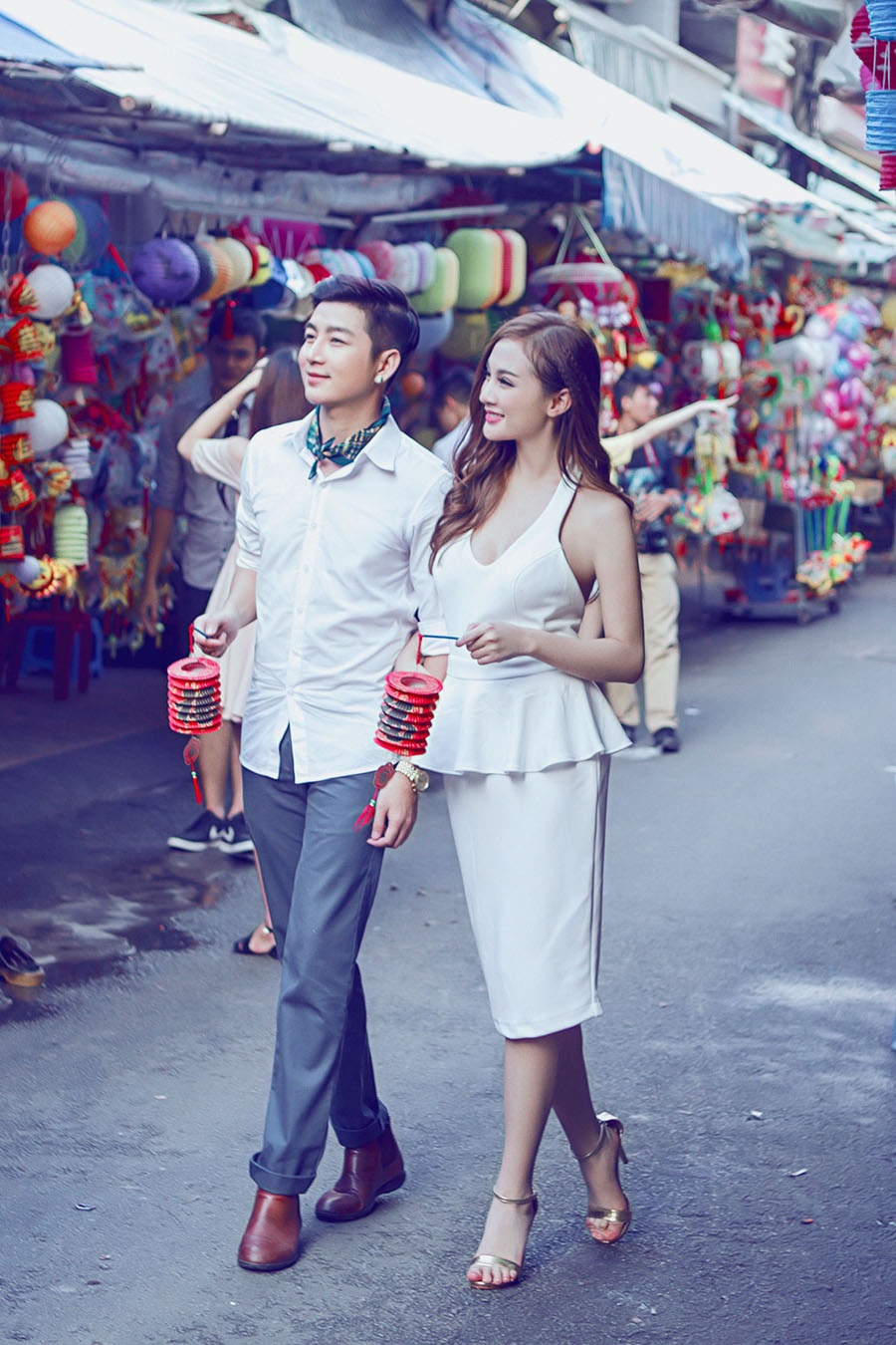 | Mới đây, hot boy Nam Hee và Kelly Nguyễn có buổi tản bộ, dạo quanh con phố trưng bày lồng đèn ở khu vực quận 5, TP.HCM. Mỗi dịp rằm tháng 8, cả hai đều có buổi dạo phố để mua sắm những món quà trung thu dành tặng cho người thân, bạn bè. Xuất hiện nổ bật trên phố, Kelly diện trang phục váy ngắn năng động, còn Nam Hee lịch lãm với bộ trang phục vest bụi, kèm sơ-mi và quần âu. |