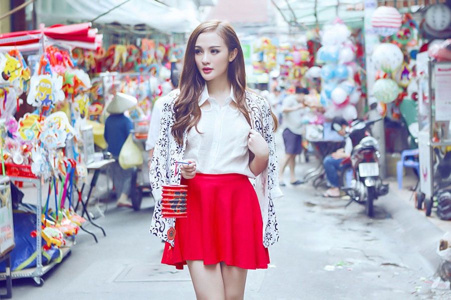 Kelly diện váy ngắn xuống phố đón trung thu cùng hot boy