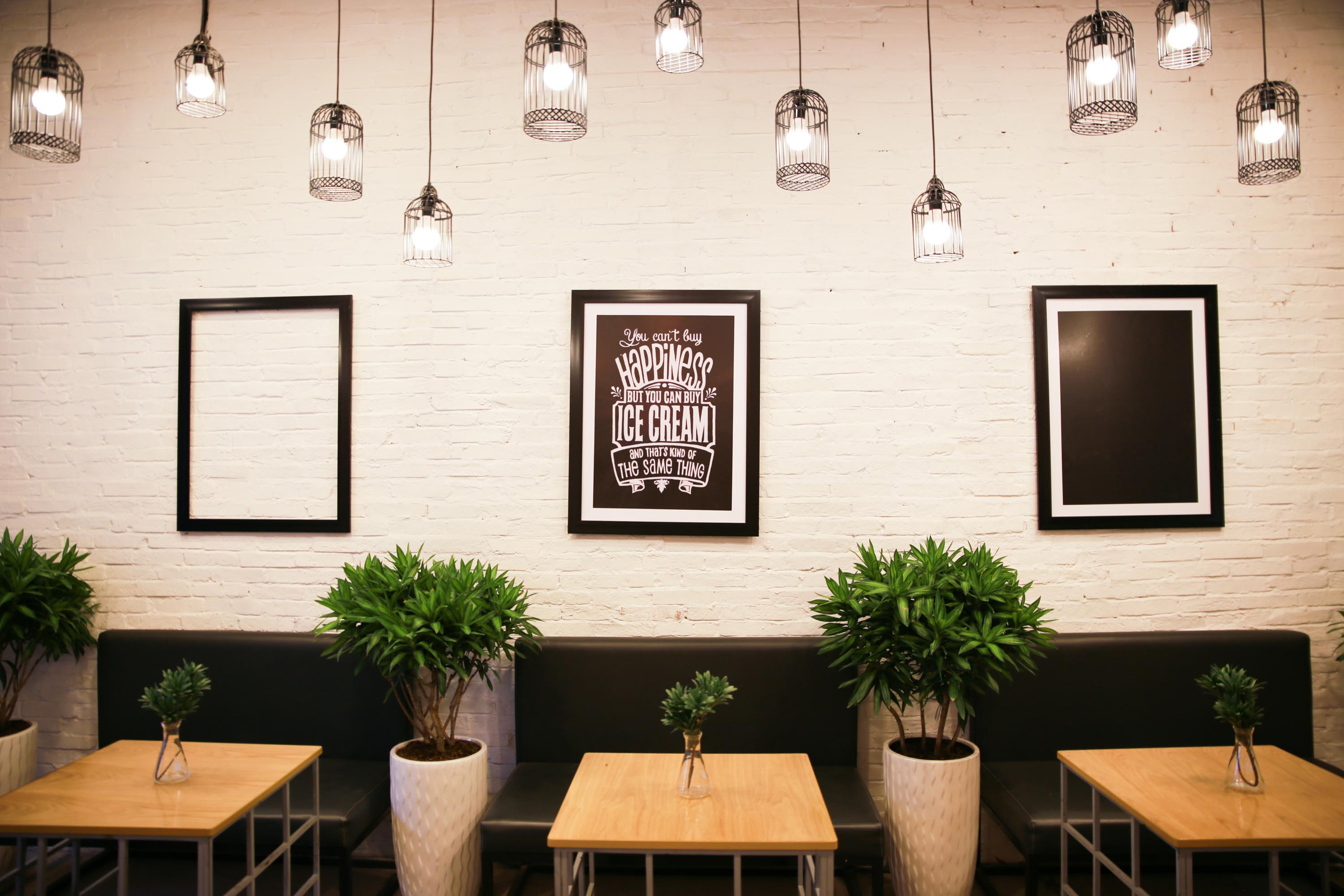 | Quán có tông màu xanh trắng, ấm áp và dễ chịu. |