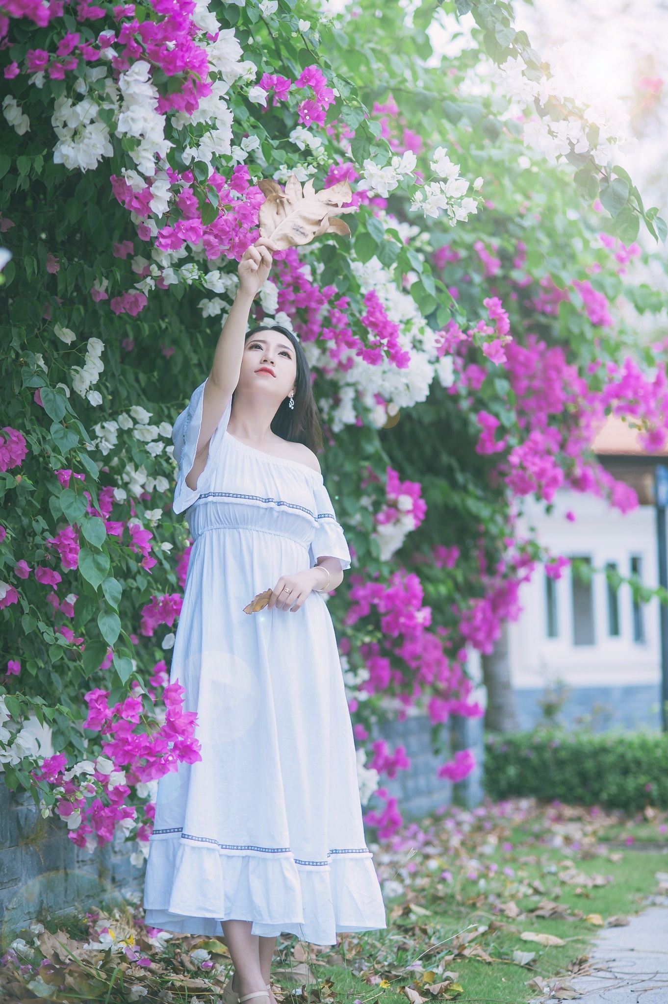 Hoa giấy là cây dây leo có nguồn gốc từ miền Trung Nam Mỹ, thường xuất hiện rợp bóng mát trước cổng nhà nhiều gia đình Việt. Background rực rỡ này được nhiều bạn trẻ lựa chọn để tạo nên bức hình sống ảo hoàn hảo. Ở TP.HCM, bạn có thể check-in cùng hoa giấy ở đảo Kim Cương (quận 2) hay một số quán cà phê trung tâm thành phố. Ảnh: Girlinfeb. |