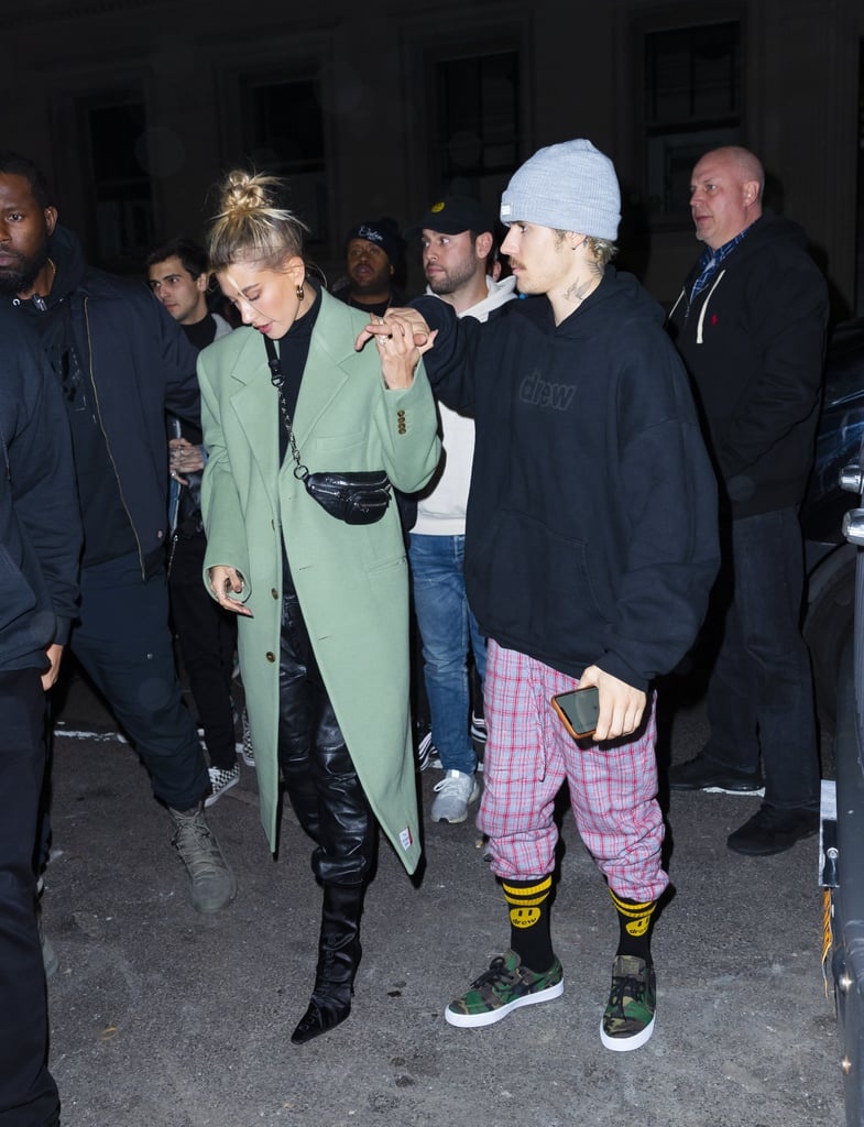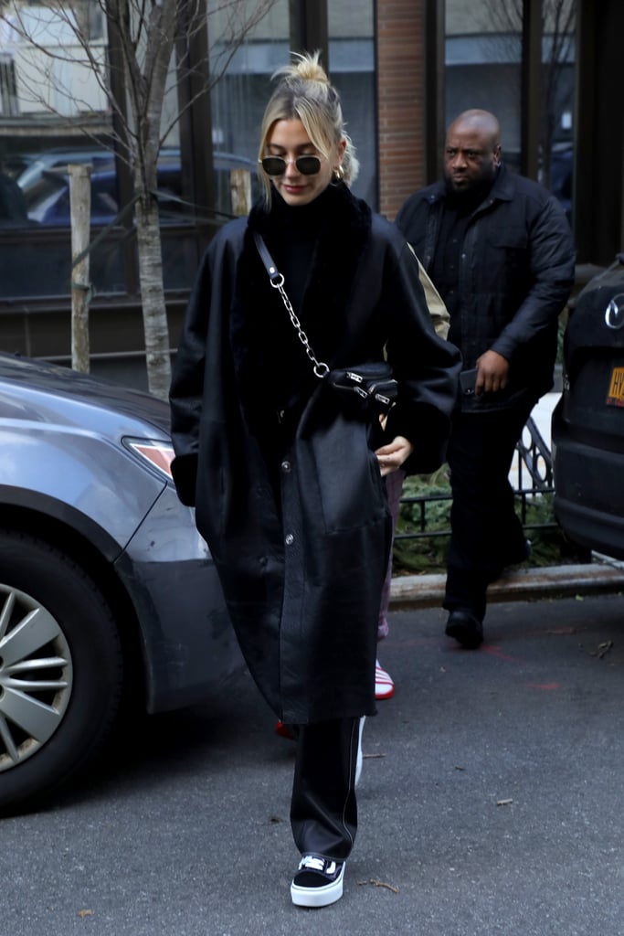 Gần đây, Hailey Bieber được bắt gặp nhiều lần trên phố với đa dạng kiểu dáng áo khoác. Sneakers, túi waist bag hay đồ da là những items đồng hành cùng người đẹp trên các cung đường. |