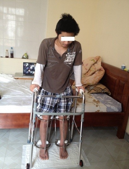 | Bệnh nhân tập tì nén một phần trong khung tại nhà. Ảnh: Bác sĩ cung cấp |