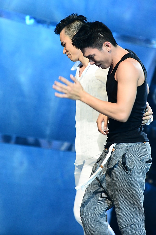 Cứng rắn như Hoàng Minh và Ngọc Tuấn nhưng họ cũng không thể không khóc khi Đình Hải bị loại. |