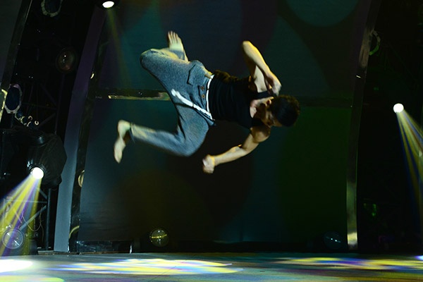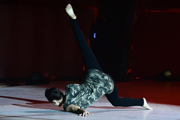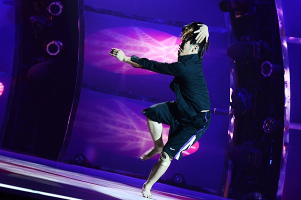Hoàng Minh sử dụng những cú xoay, lộn chuẩn xác kết hợp với biểu các gương mặt đầy chiều sâu trên nền nhạc có tiết tấu nhanh với nhiều nhịp phách nhỏ - ca khúc Next. |