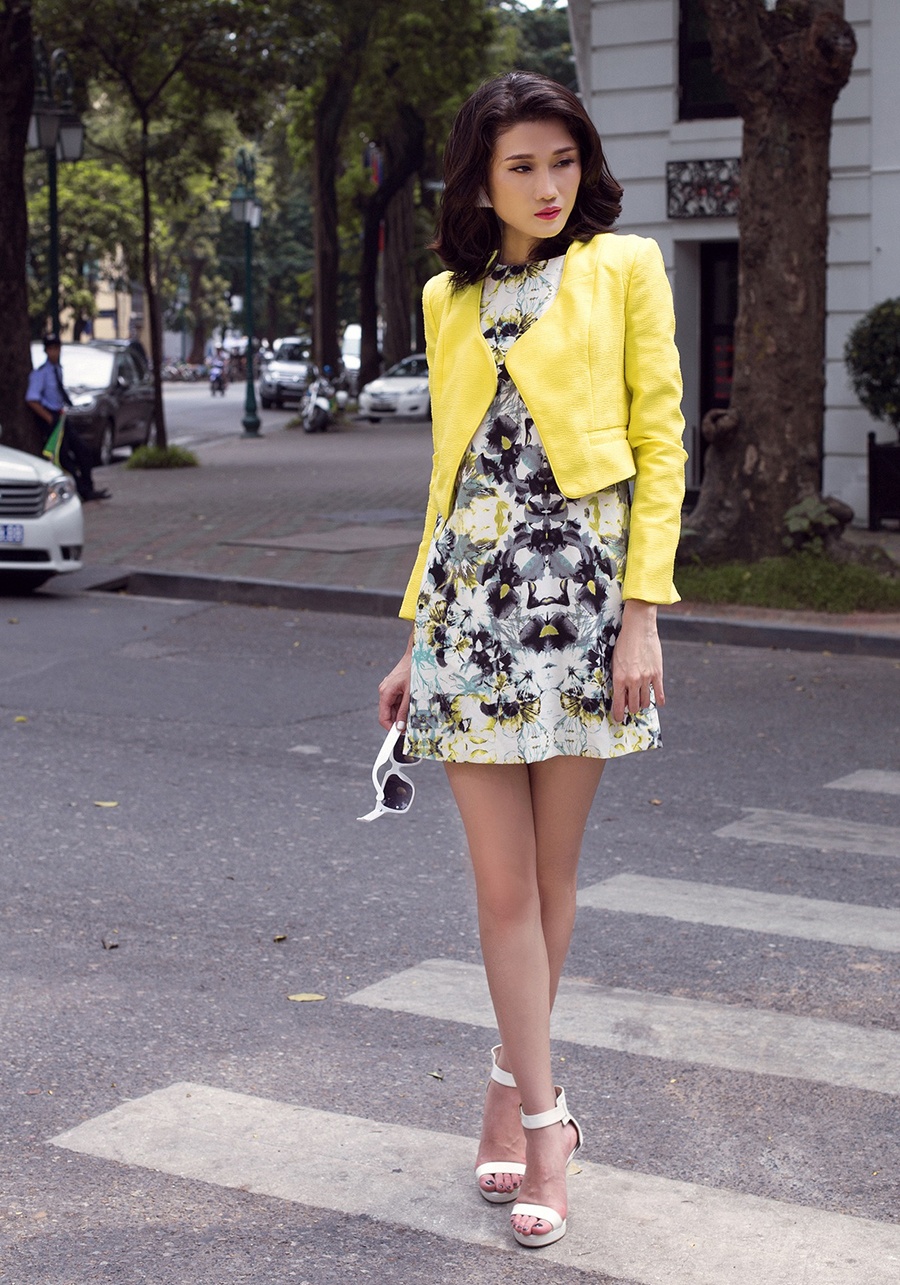 | Kiểu dáng blazer thêm sinh động với nhiều kiểu dáng lửng mới lạ. Áo blazer mix kèm bộ đầm dáng suôn họa tiết mùa thu lãng mạn. |