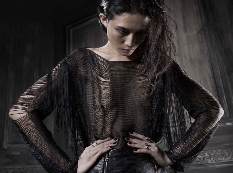 Thậm chí, để hình ảnh thêm phần bí ẩn, cô được trang bị phụ kiện mặt nạ sắt chiến binh và diễn xuất đầy tâm trạng theo yêu cầu của nhãn hàng.