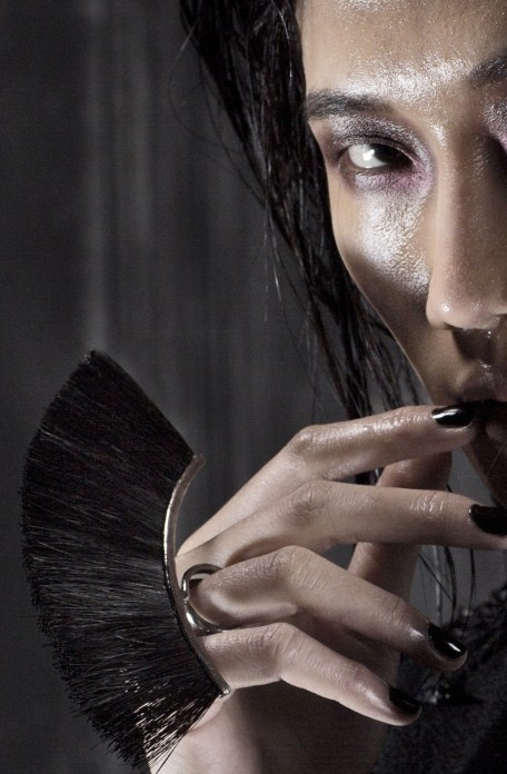 | Khi thực hiện ý tưởng ấn tượng, chân dài Next Top Model diện trang phục tông đen, trang điểm phá cách và diễn xuất lạnh lùng. |