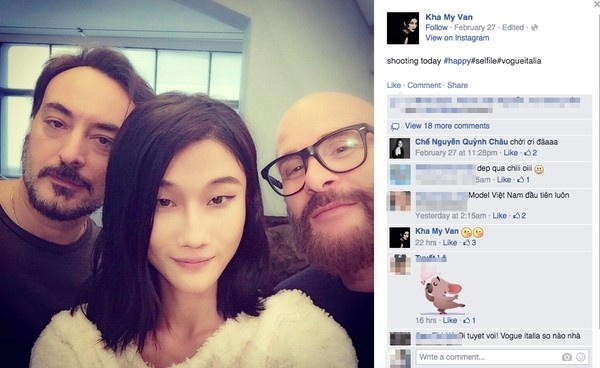 Liên hệ với nữ người mẫu, cô xác nhận, đây chính là buổi chụp bộ sưu tập thời trang cho tạp chí hàng đầu của Italy. Kha Mỹ Vân cho hay, để có được cơ hội làm việc cùng ê-kíp hình ảnh chuyên nghiệp của Vogue, cô phải trải qua nhiều buổi casting nghiêm ngặt, do chính các chuyên gia thời trang của tạp chí này tuyển lựa.