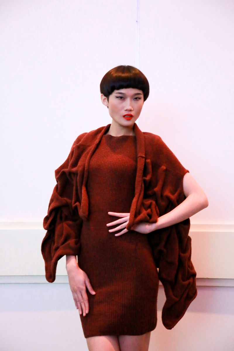 Á quân ''Vietnam's Next Top Model'' giữ vai trò chốt màn cho phần trình diễn BST ''Wool'' của NTK Hoàng Minh Hà.