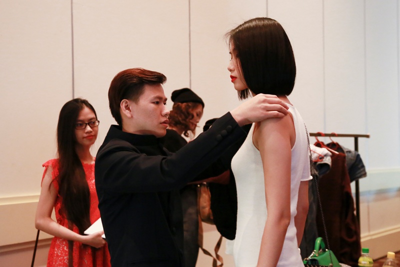 Hoàng Minh Hà chuẩn bị trang phục diễn cho Thùy Trang.