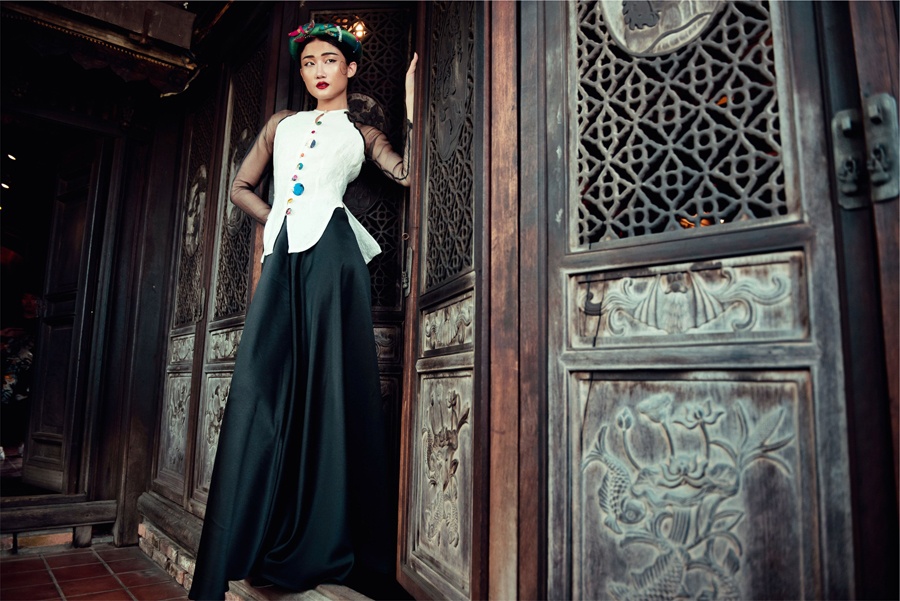 Á quân Vietnam's Next Top Model 2012 duyên dáng, thanh lịch trong những thiết kế đậm nét truyền thống.