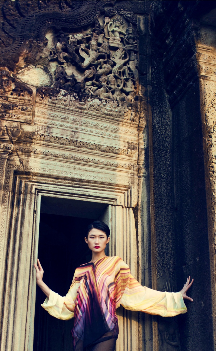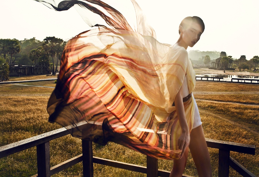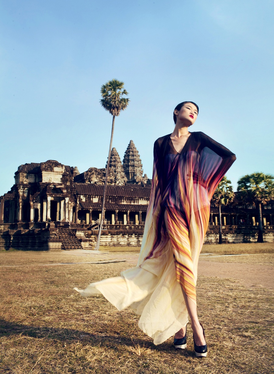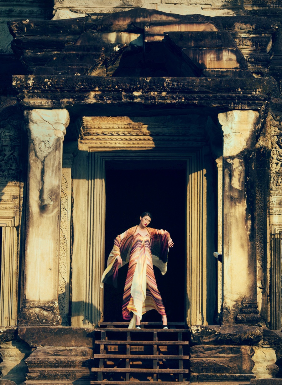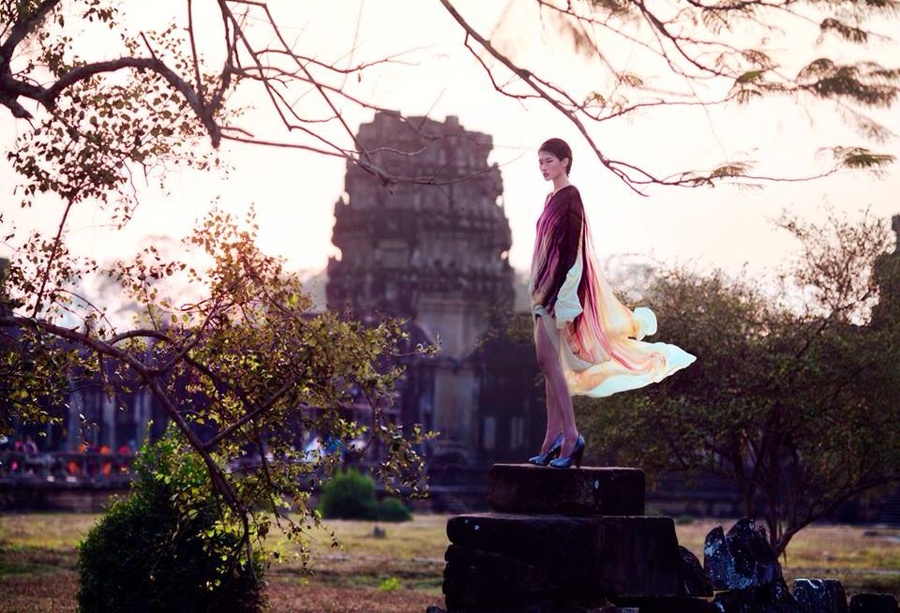 Để thực hiện những khung ảnh đầy chất nghệ thuật, Kha Mỹ Vân cùng ê-kíp có chuyến công tác ngắn ngày tại đền Angkor Wat. Đây là một trong những công trình kiến trúc cổ nổi tiếng nhất thế giới và là di tích còn lại của nền văn minh Khmer cổ thuộc đất nước Campuchia.