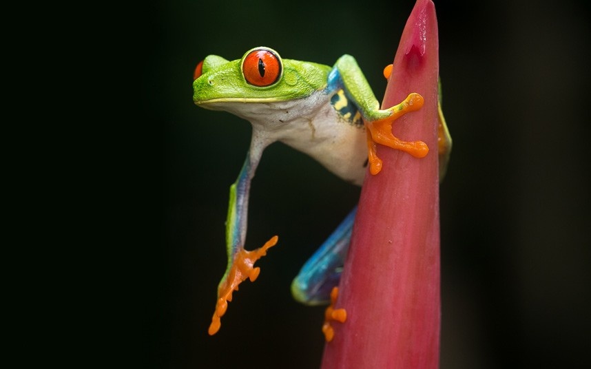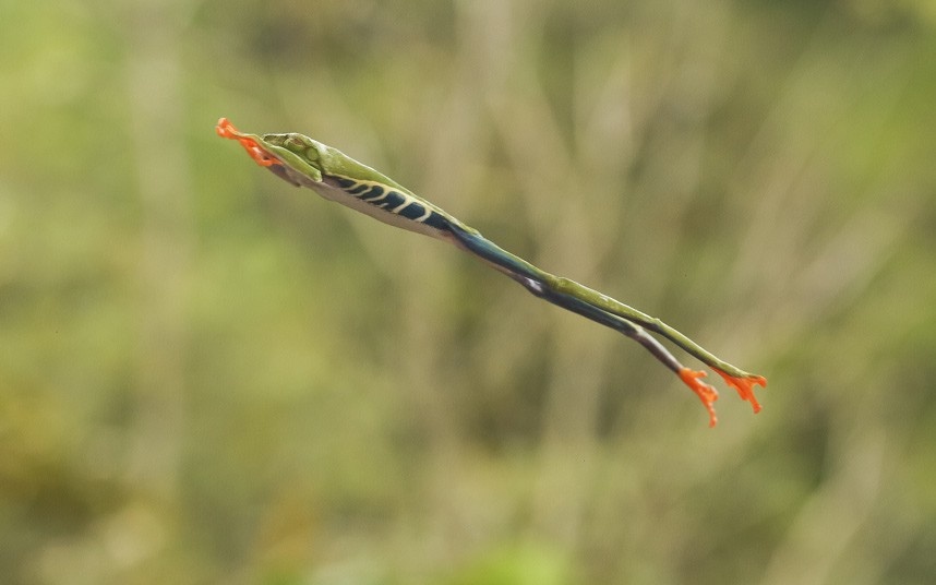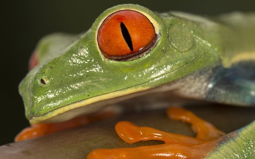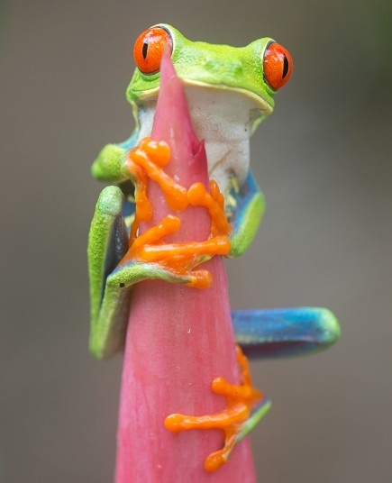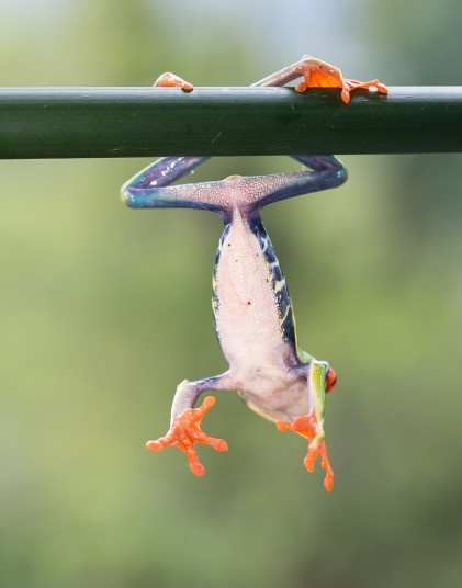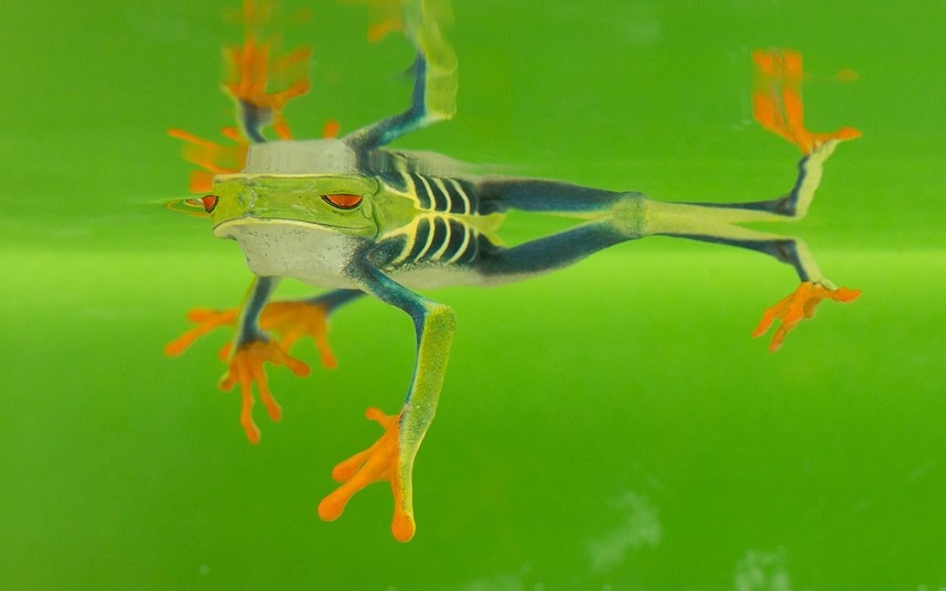 Các chi ếch cây mắt đỏ đều có giác mút, giúp chúng bám vào cành cây hoặc lá dễ dàng trong khi di chuyển. Lớp màng trên các chi giúp chúng hoạt động linh hoạt dưới nước. Ảnh: Barcroft. |