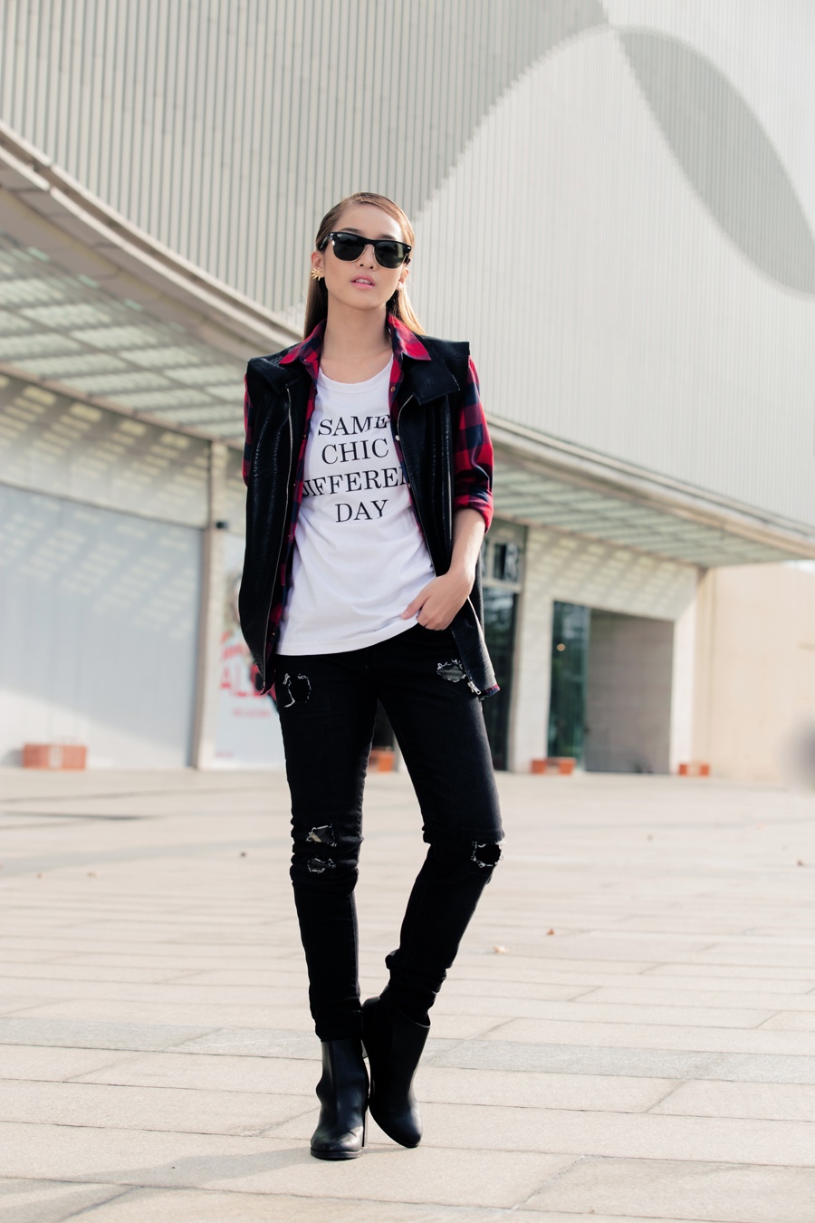 | Vốn là người mẫu tuổi teen được yêu thích, Khả Ngân dễ dàng biến đổi về phong cách thời trang từ nữ tính, điệu đà sang nổi loạn, mạnh mẽ. Trong bộ ảnh mới, người đẹp 9X thoải mái chọn cho mình những set trang phục hơi hướng tomboy đang được ưa chuộng. |
