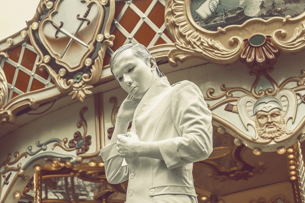 | Hằng ngày, anh cảm nhận rõ sự cô đơn khi rong ruổi trên chiếc xe máy cũ từ nhà đến nơi làm việc. Nỗi buồn ấy càng nhân lên gấp bội lúc chàng trai chứng kiến cảnh các cặp đôi vui vẻ đi chơi, một vài tốp bạn vô tư đùa nghịch cùng nhau... còn mình phải hóa tượng đứng hàng giờ trong công viên mua vui cho bao người để kiếm từng đồng bạc lẽ. |