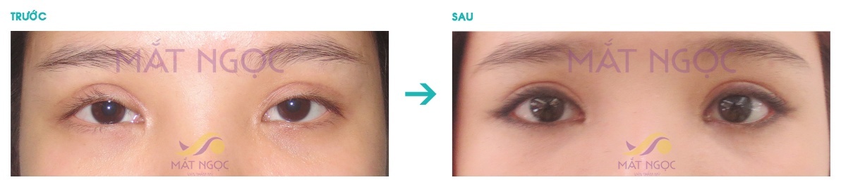 | Trước khi phẫu thuật, đôi mắt trông lờ đờ, thiếu sức sống, phần mí trên to, không hài hòa làm tổng thể khuôn mặt giảm đi sự ấn tượng. Tuy nhiên, sau phẫu thuật, những khuyết điểm ban đầu đã biến mất hoàn toàn, mí nhỏ tự nhiên, đôi mắt to tròn, ấn tượng hơn. |