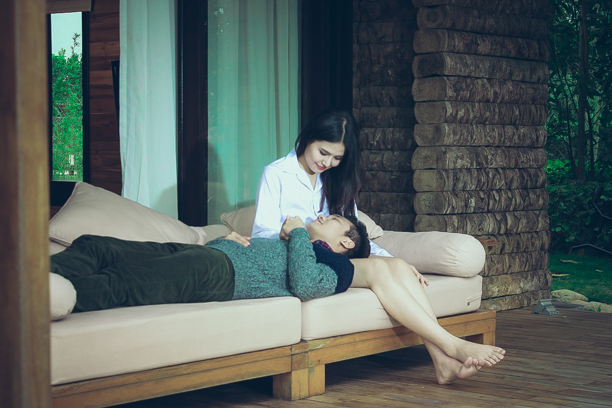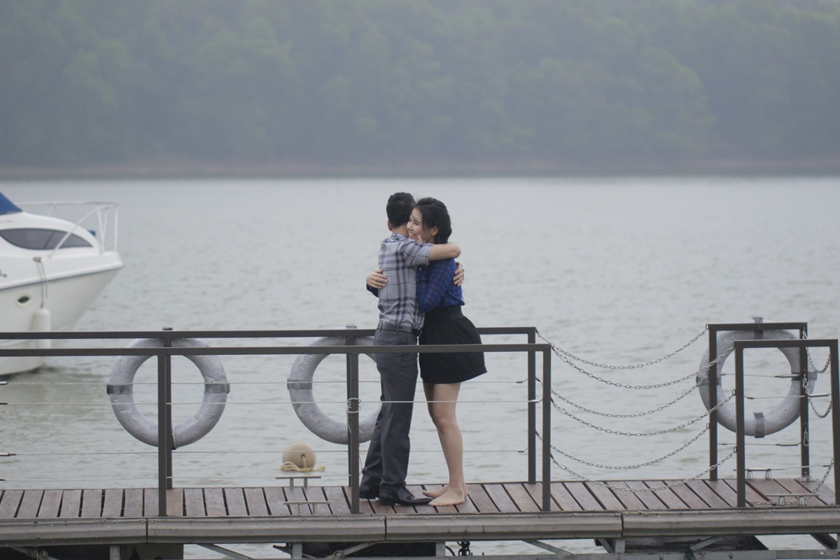 Dù thời tiết miền Bắc sau Tết vẫn rất lạnh, nhiệt độ luôn ở mức trên dưới 10 độ C, Khắc Việt và bạn diễn vẫn thực hiện những cảnh quay lãng mạn tại một khu nghỉ dưỡng ở Vĩnh Phúc.