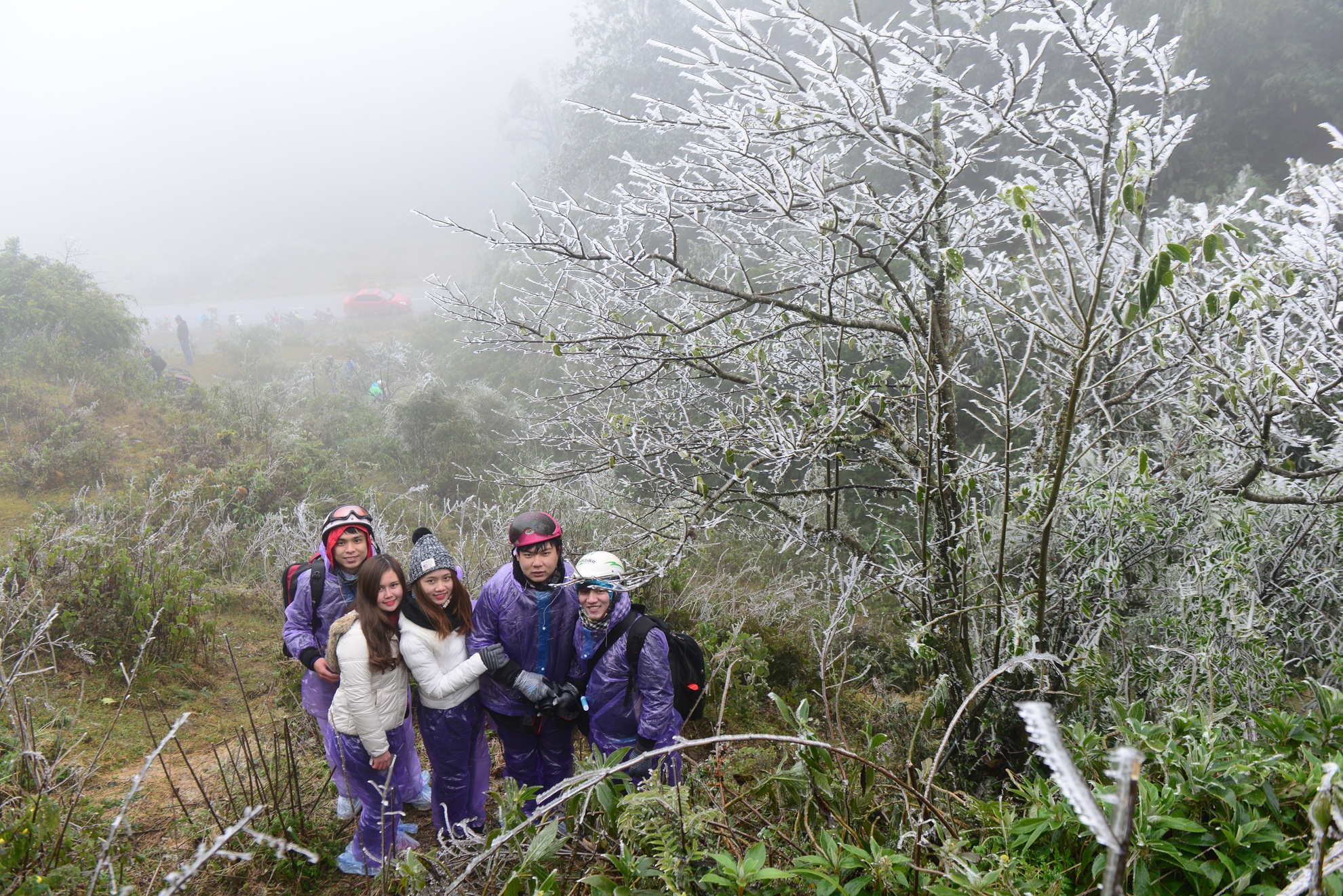 Để kịp ngắm được những giọt băng bao phủ cây cỏ, hàng trăm du khách không quản ngại đường đồi núi hiểm trở lên Sapa ngay trong đêm và có mặt kịp thời lúc sáng sớm.