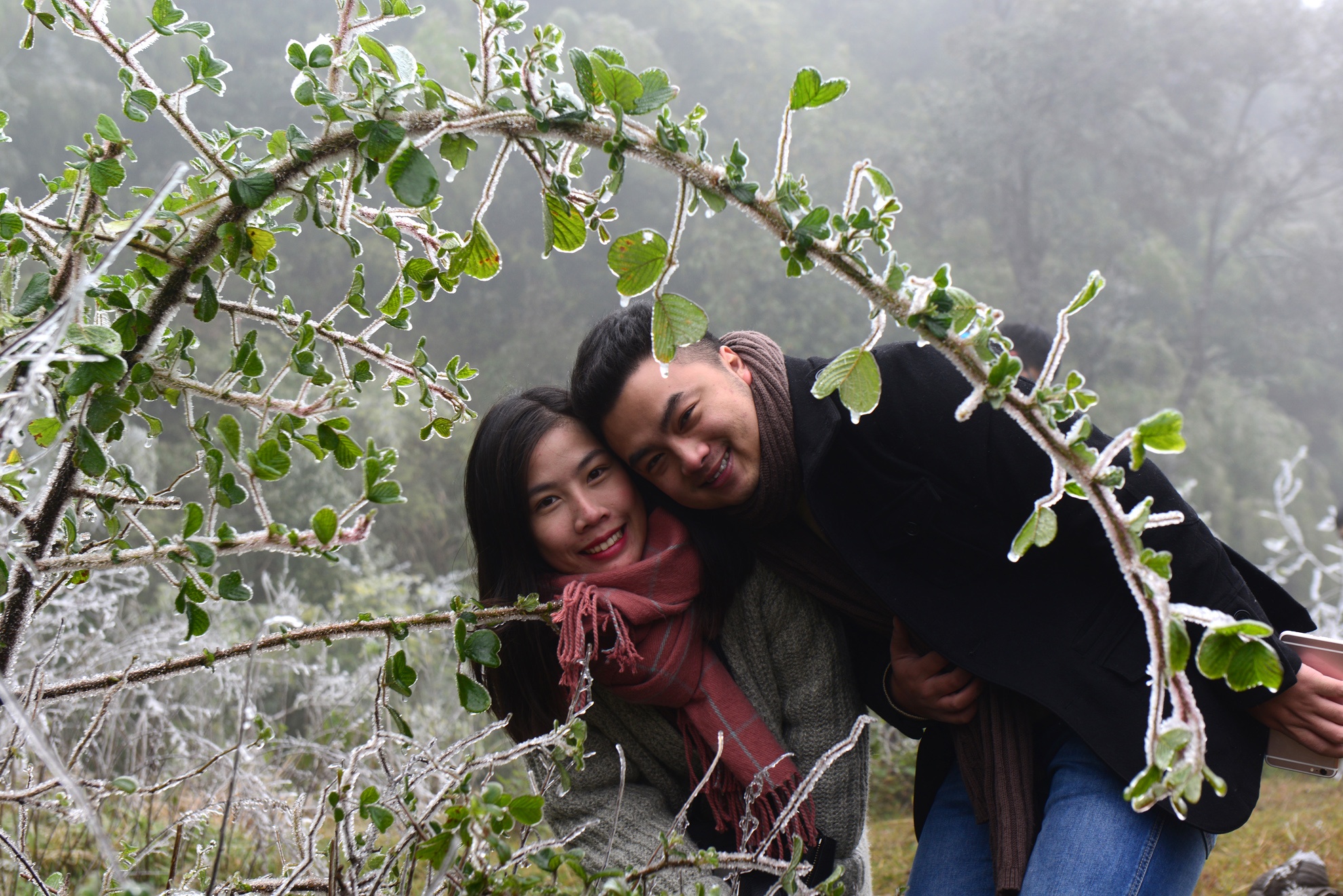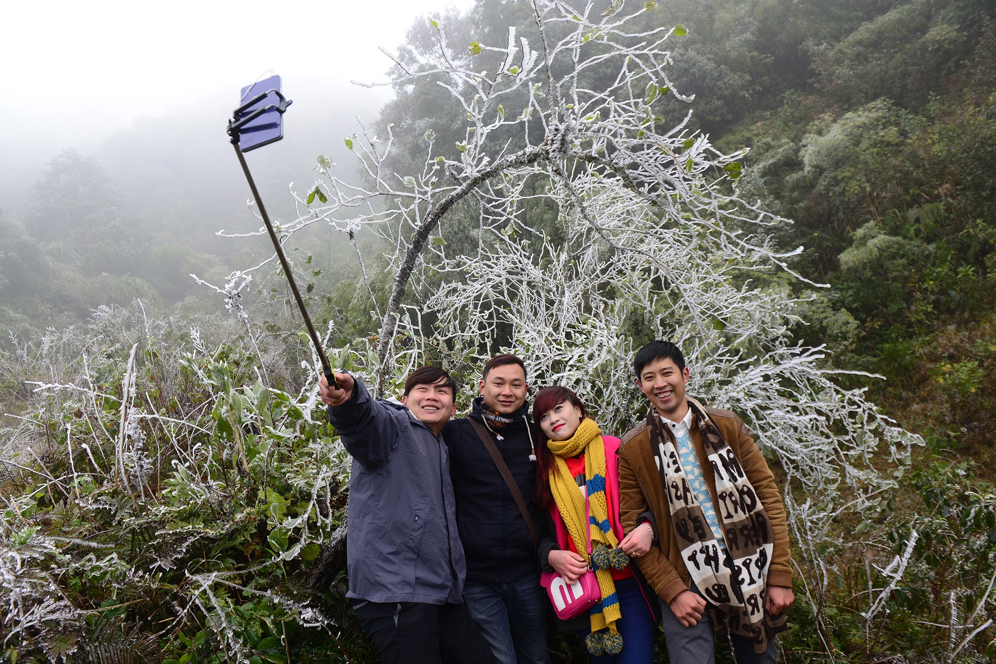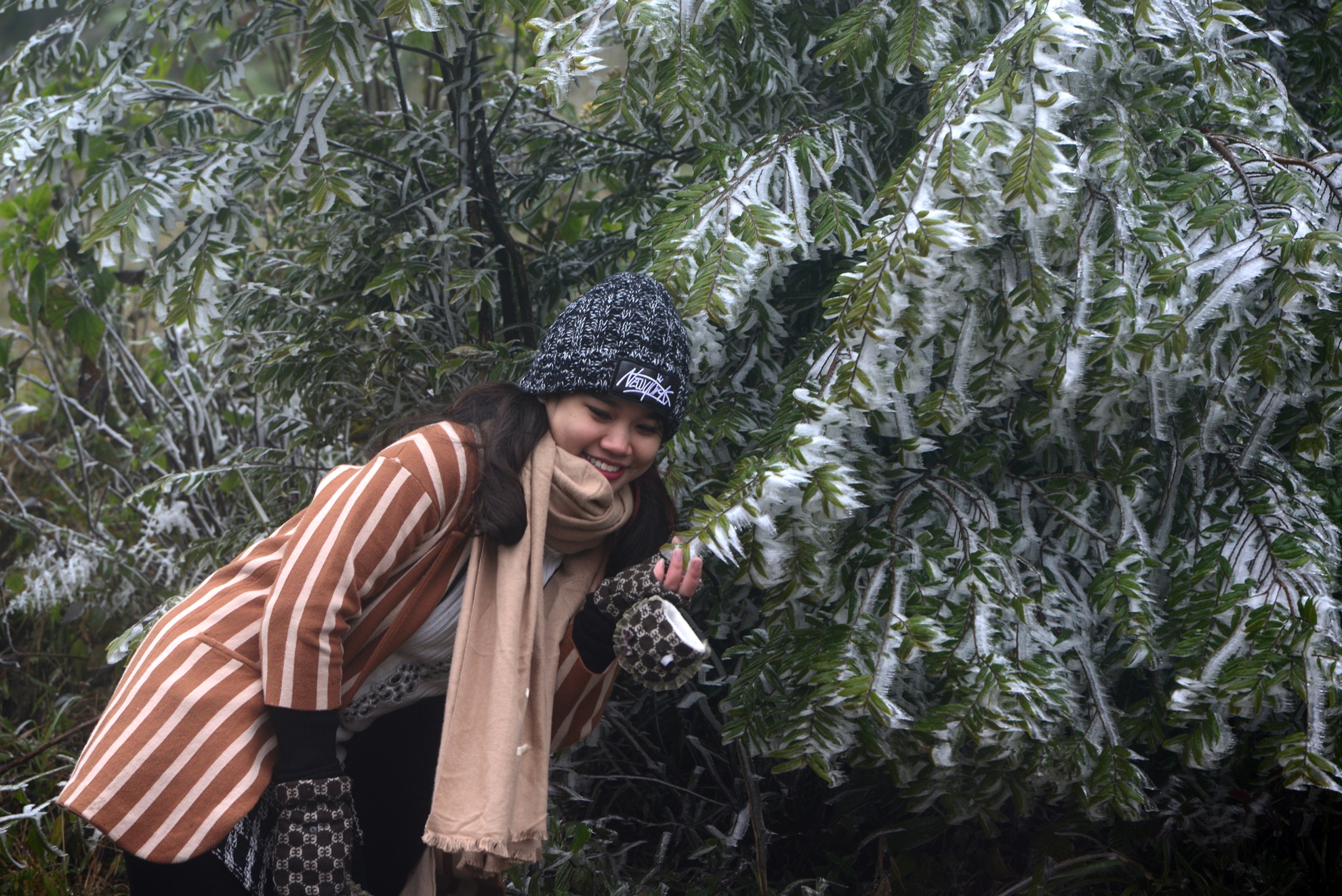 | Nhiều vị khách du lịch đã may mắn chụp được các bức ảnh đẹp về băng giá Sapa. |