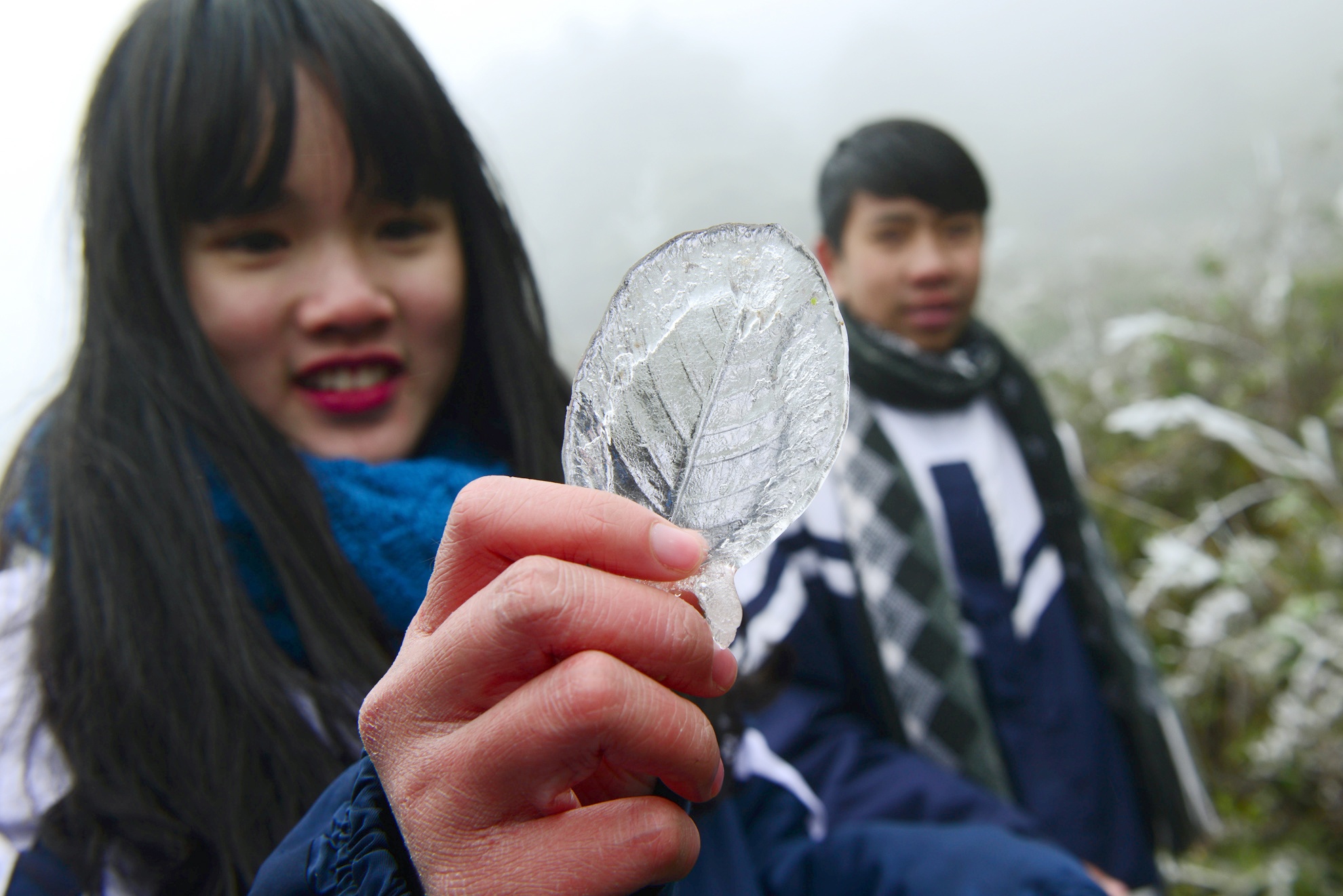| Hiện tượng băng không còn là hiếm mỗi khi vùng cao giá rét dưới 1 độ C nhưng nhiều bạn trẻ vẫn thích thú được trải nghiệm cái lạnh buốt trên đỉnh đèo. |