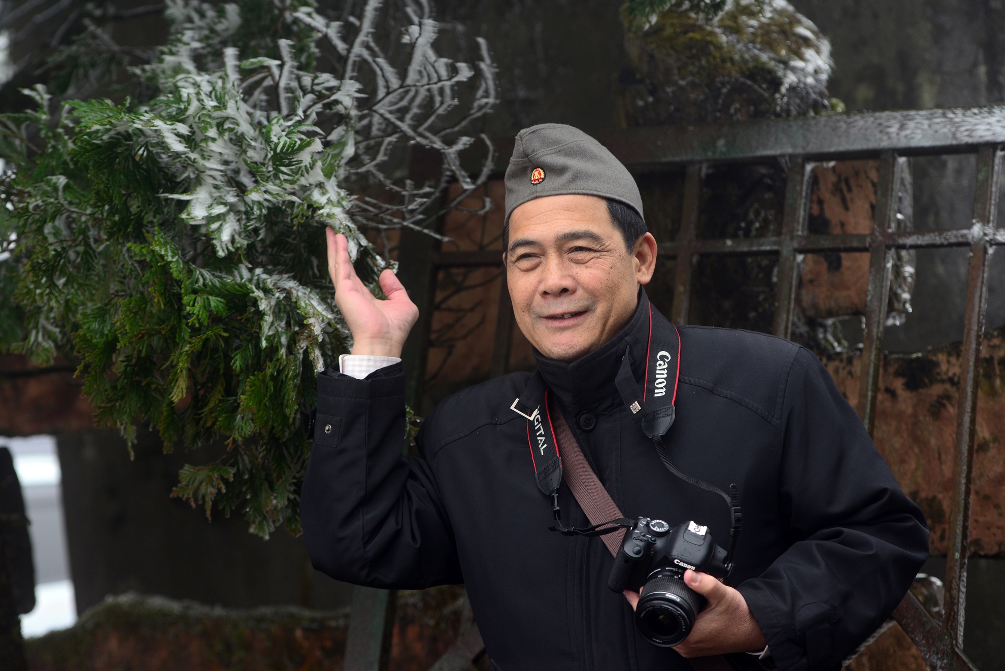 | Ông Đinh Đức Thành (62 tuổi), dự đoán Lào Cai sẽ có băng, ngay từ chiều hôm trước, ông cùng bạn bè đi ôtô khách từ Quảng Ninh lên Sapa. Sáng sớm ngày 17/12, ông đã có mặt tại đỉnh đèo. Ông rất thỏa mãn sau khi sáng tác được vài tấm hình đẹp về băng. |