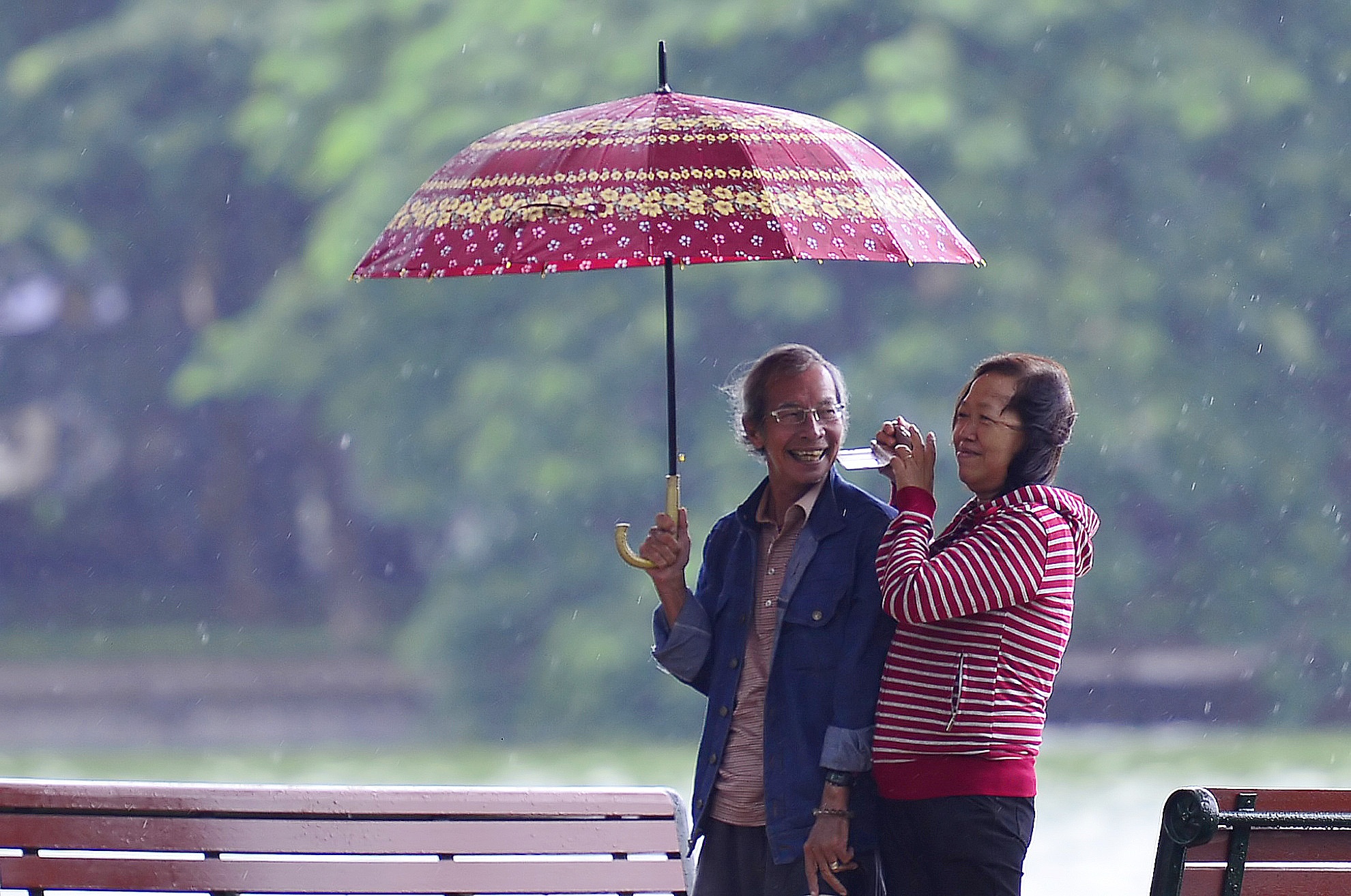 Khách Tây mặc áo mưa chống lạnh đầu mùa