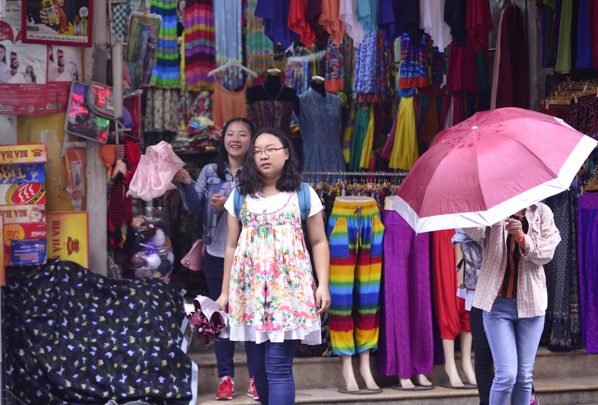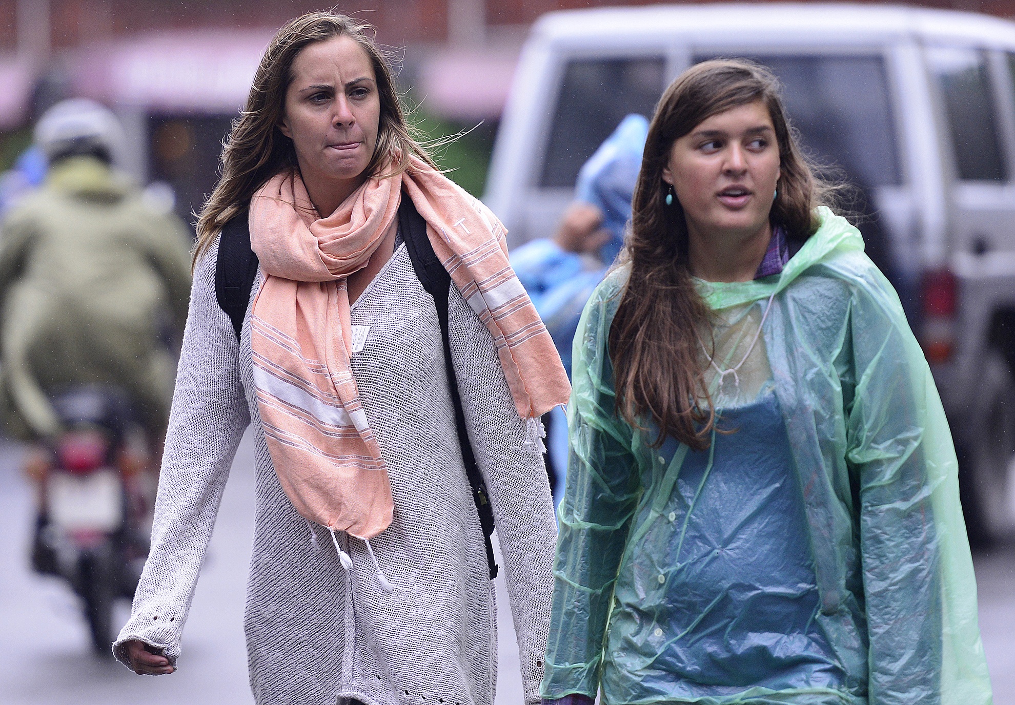Linda (trái) đến từ Anh quốc cho biết, cô và bạn sang Việt Nam được 3 ngày. Hôm nay cô phải lên phố mua chiếc khăn quàng cho đỡ lạnh.