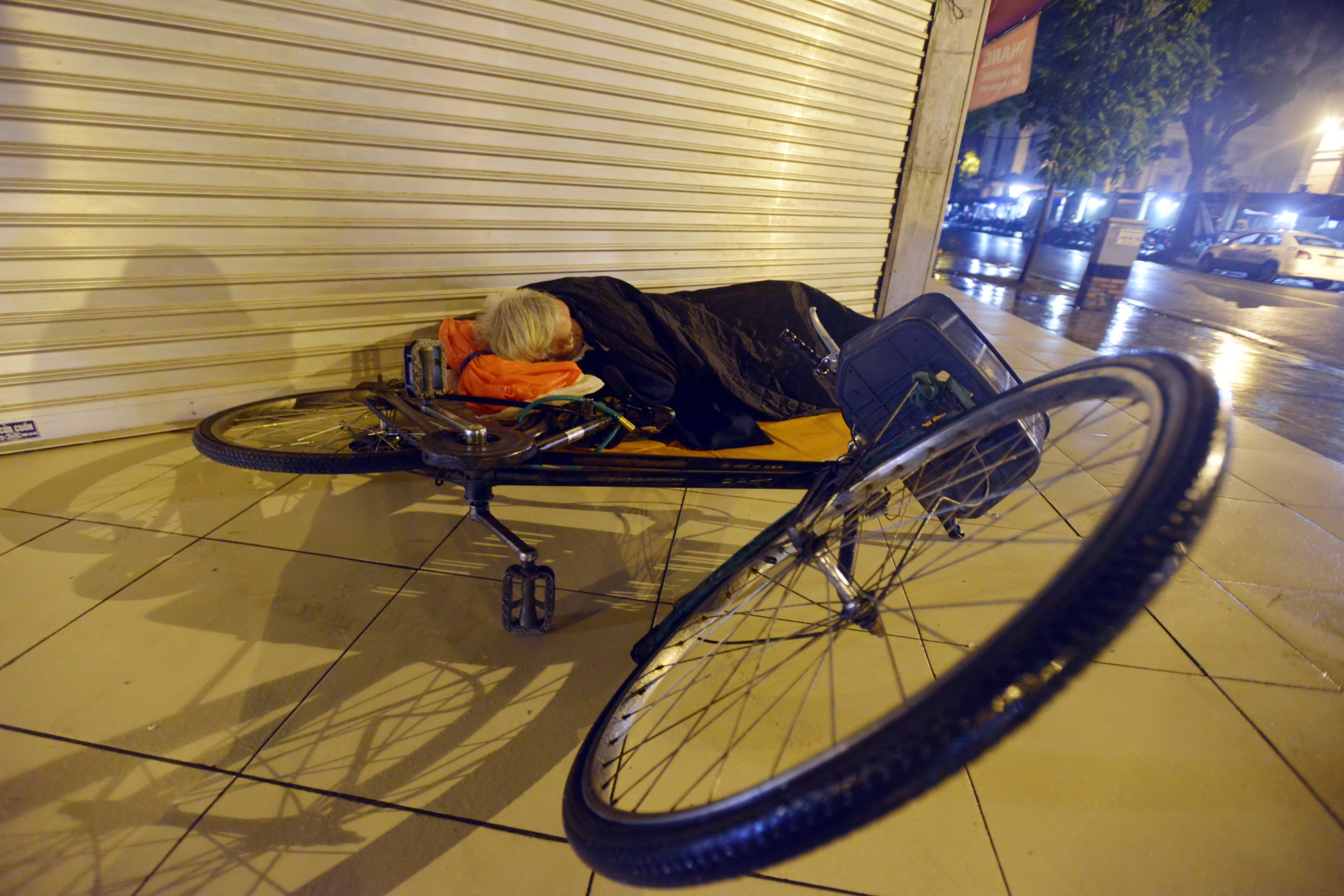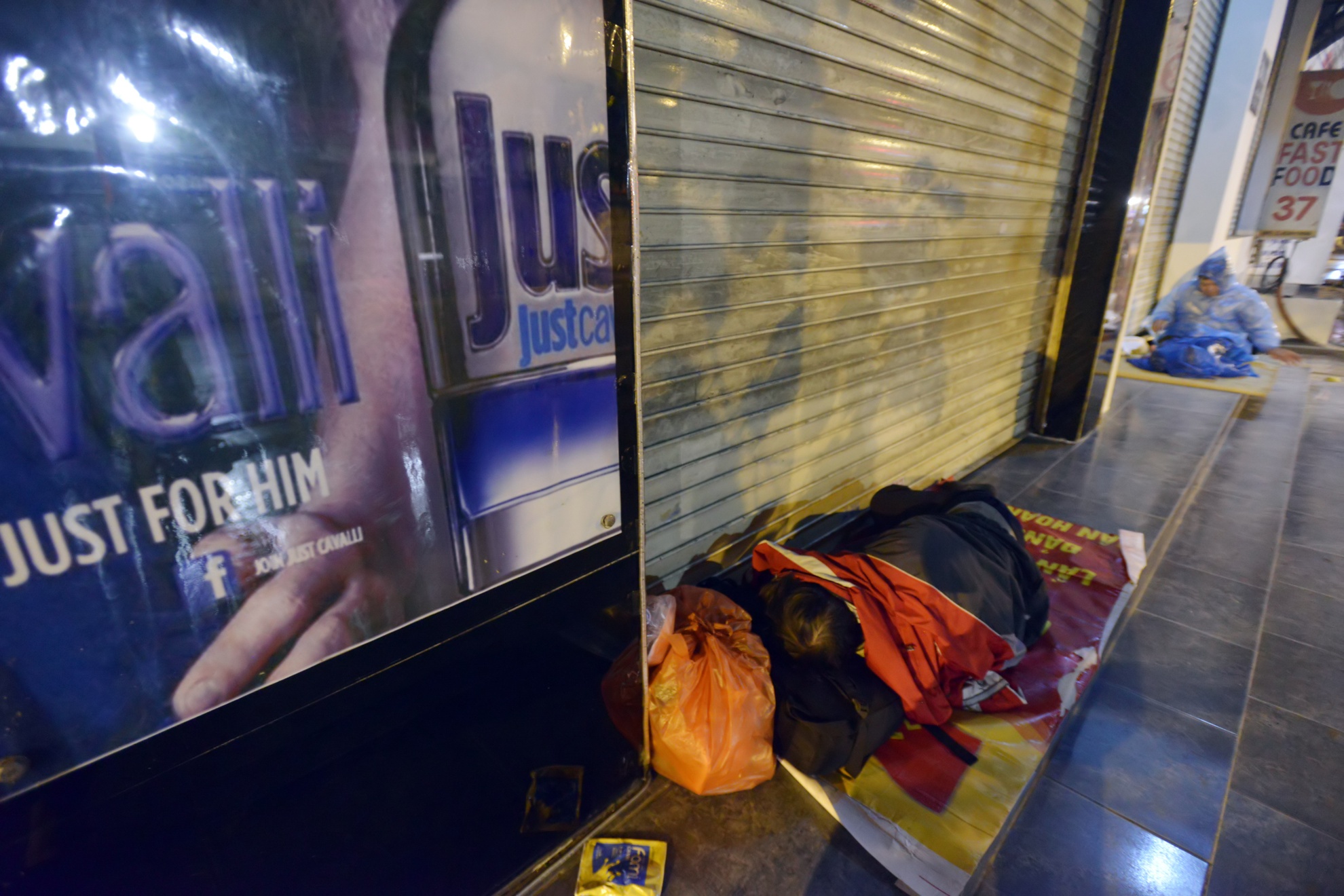 | Những cơn mưa nhỏ, kèm theo gió liên tục thổi khiến nhiều người nằm co ro quay lưng ra ngoài đường. |