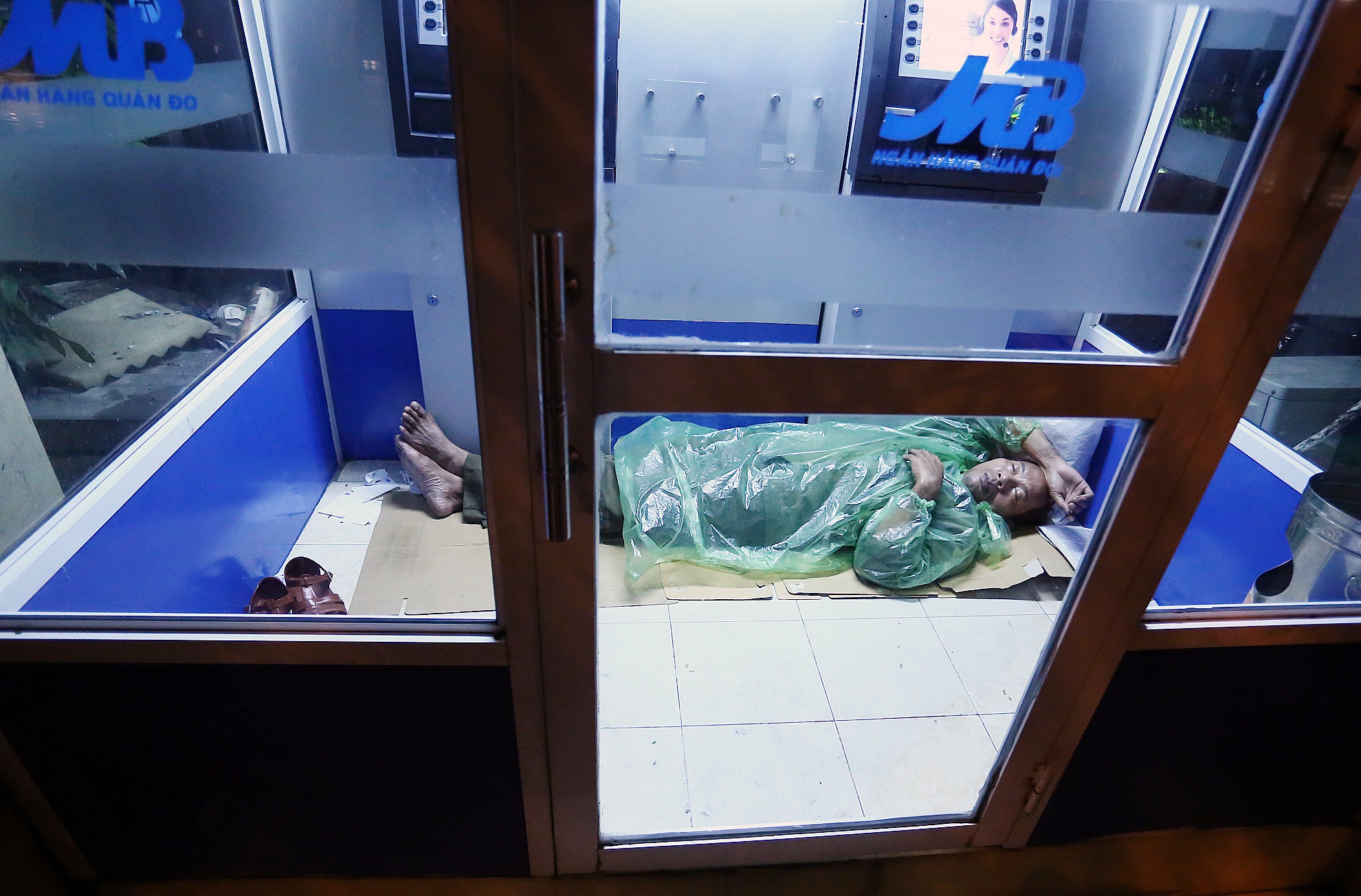 | Số khác tìm những nơi chắn gió tốt như trạm ATM để ngủ qua đêm. Họ chủ yếu là những lao động thời vụ đến từ các tỉnh Hưng Yên, Bắc Giang, Thanh Hóa... |