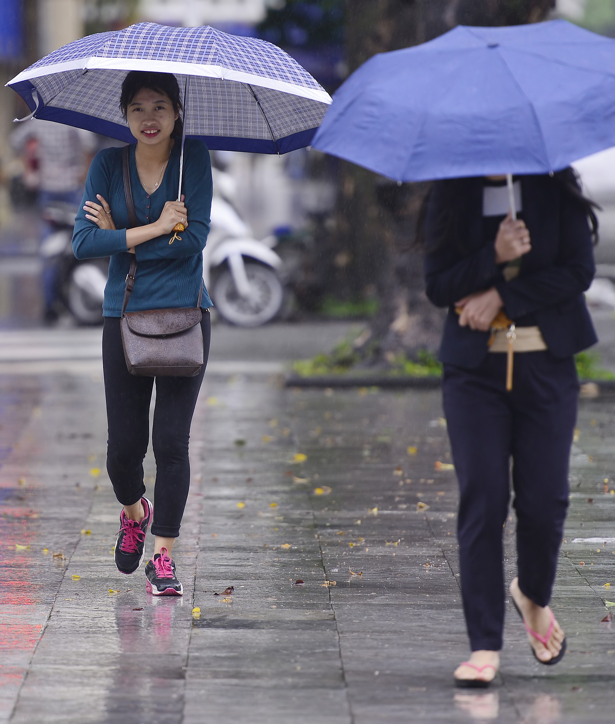 | Sáng 10/10, cơn mưa phùn tiếp tục đổ xuống Hà Nội. Mưa cùng thời tiết lạnh giá khiến hầu hết mọi người đều trang bị quần áo ấm khi ra đường. |