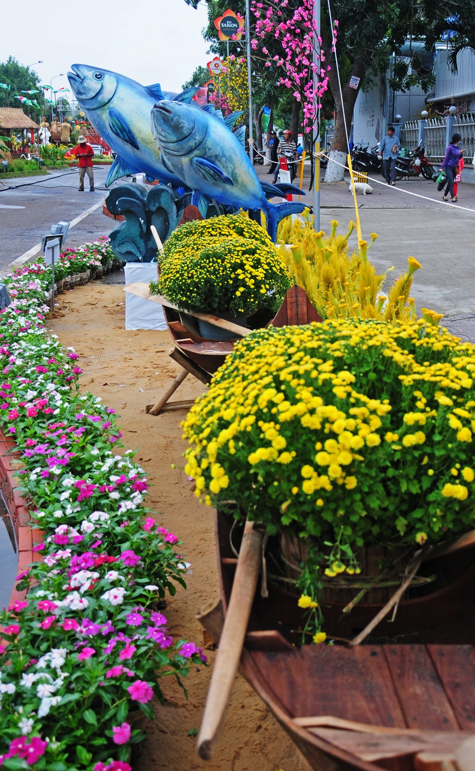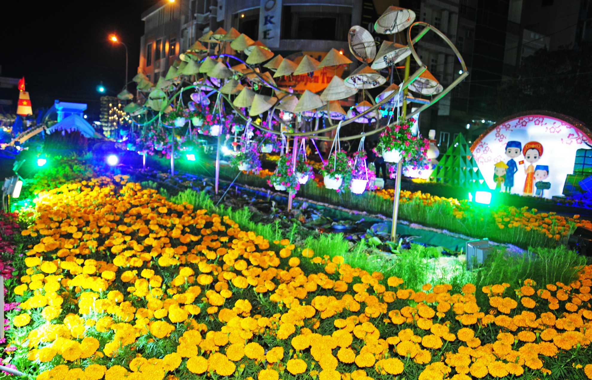| Nổi bật trong không gian hoa là chủ đề "Hoàng Sa- Trường Sa là của Việt Nam". Lần đầu tiên công trình đường hoa xuân được thực hiện ở Bình Định, quy mô lớn với 40.000 chậu hoa tươi các loại xếp thành 45 mô hình về thành tựu kinh tế- xã hội, di tích lịch sử văn hóa, công trình tiêu biểu của thanh niên. |