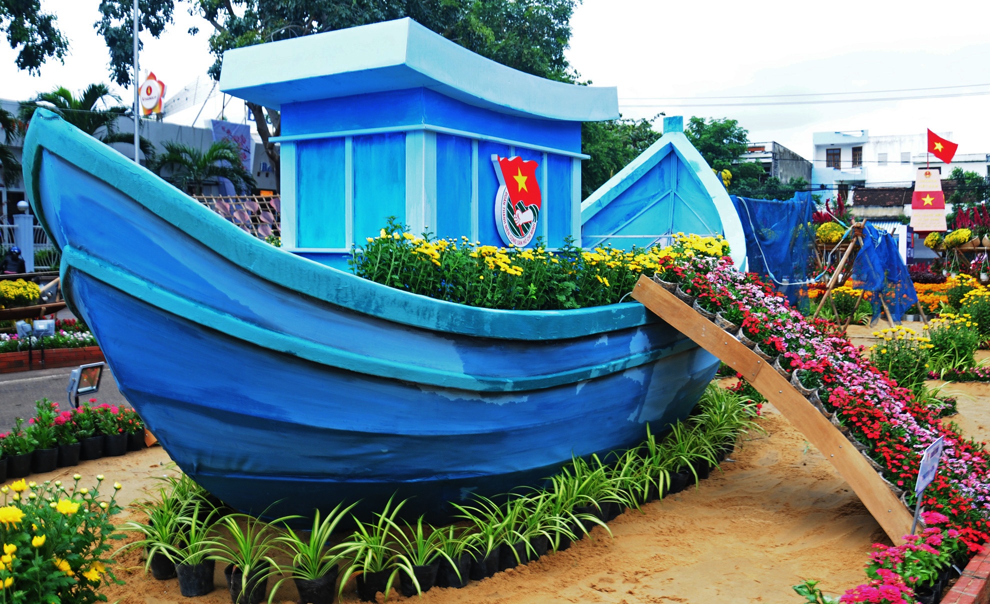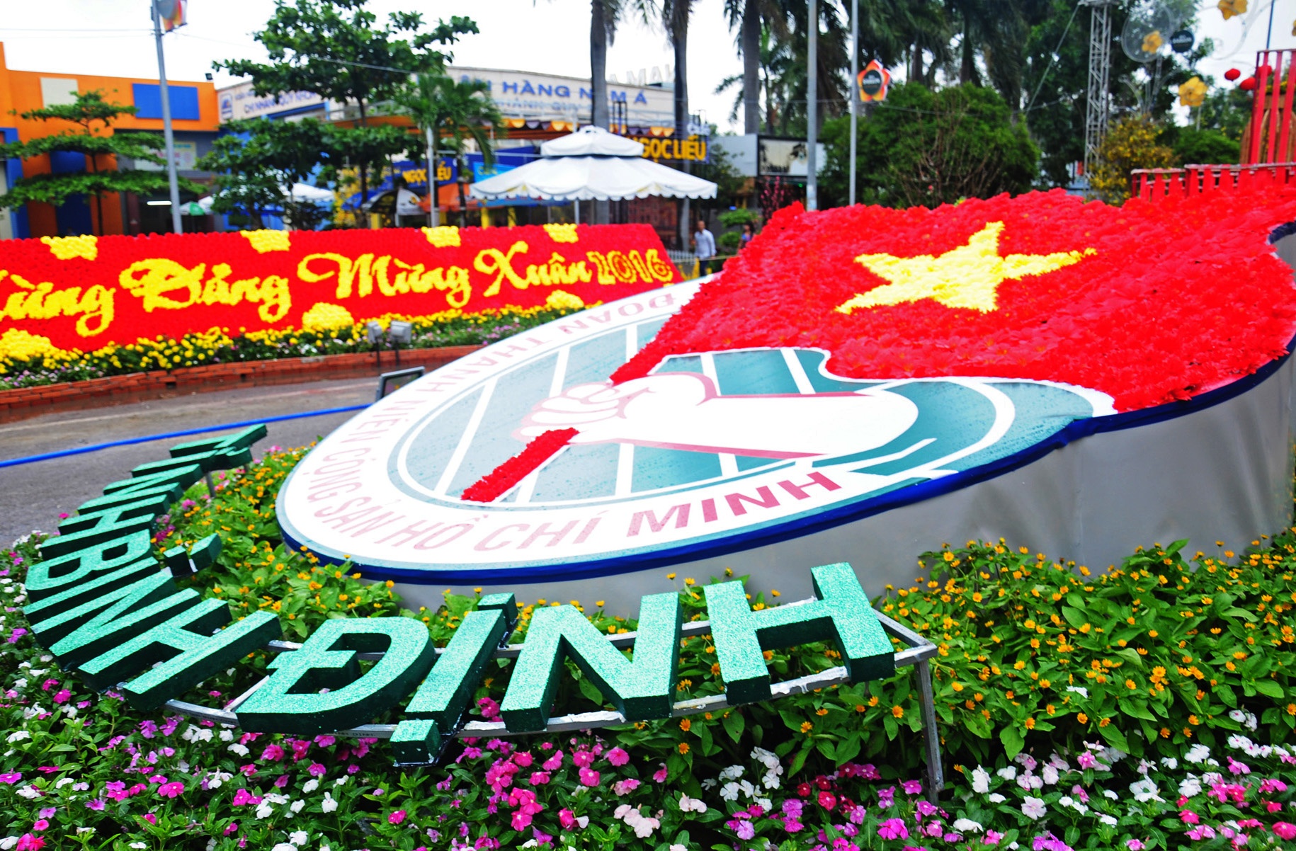 gian hoa mang huy hiệu đoàn- biểu tượng của thế hệ trẻ Bình Định mừng Đảng, mừng mùa xuân mới 2016.