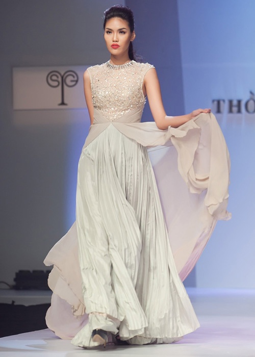 Còn về việc có áp lực không khi đảm nhận một vị trí quan trọng như vậy thì chắc hẳn phải có ít nhiều. Dù cho có bao nhiêu lần đảm nhận vị trí vedette thì cảm giác của mỗi lần cũng đều khác nhau, vì tính chất mỗi bộ sưu tập trình diễn đều khác. Đó là trước khi đặt chân lên sàn catwalk thôi. Còn muốn thật sự thể hiện tốt trên sân khấu, tôi nghĩ mình nên để lại tất cả những áp lực đó phía sau để đầu óc tỉnh táo và duy trì được một thần thái tốt nhất trên sàn diễn.