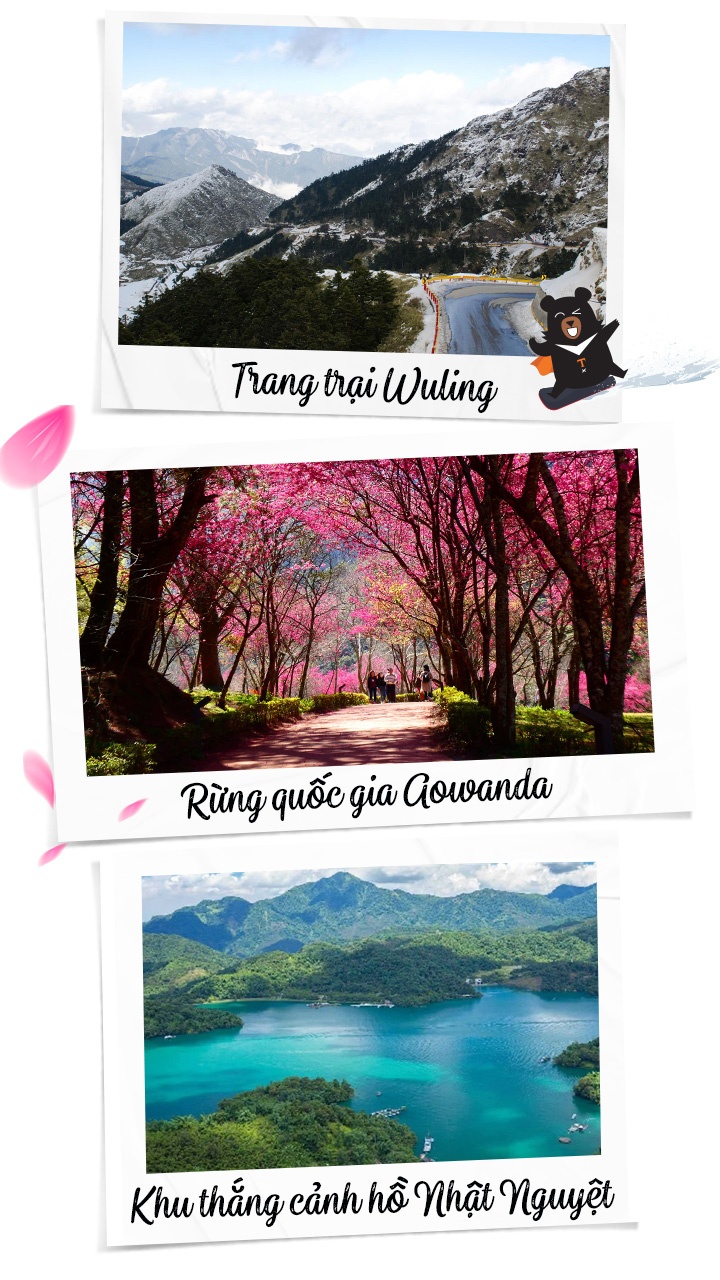 Trang trại Wuling: Wuling Farm là nông trại rộng lớn, nằm gần trung tâm Đài Trung. Nơi đây thuộc khu bảo tồn thiên nhiên Shei-Pa, diện tích hơn 700 ha. Du khách có thể trải nghiệm trồng hoa, cây trái, rau, chè núi và nuôi cá. Phong cảnh thiên nhiên trang trại đa dạng, thơ mộng suốt 4 mùa với hoa lê, hoa mận, hoa táo, hoa trà, xô thơm, cây phong…