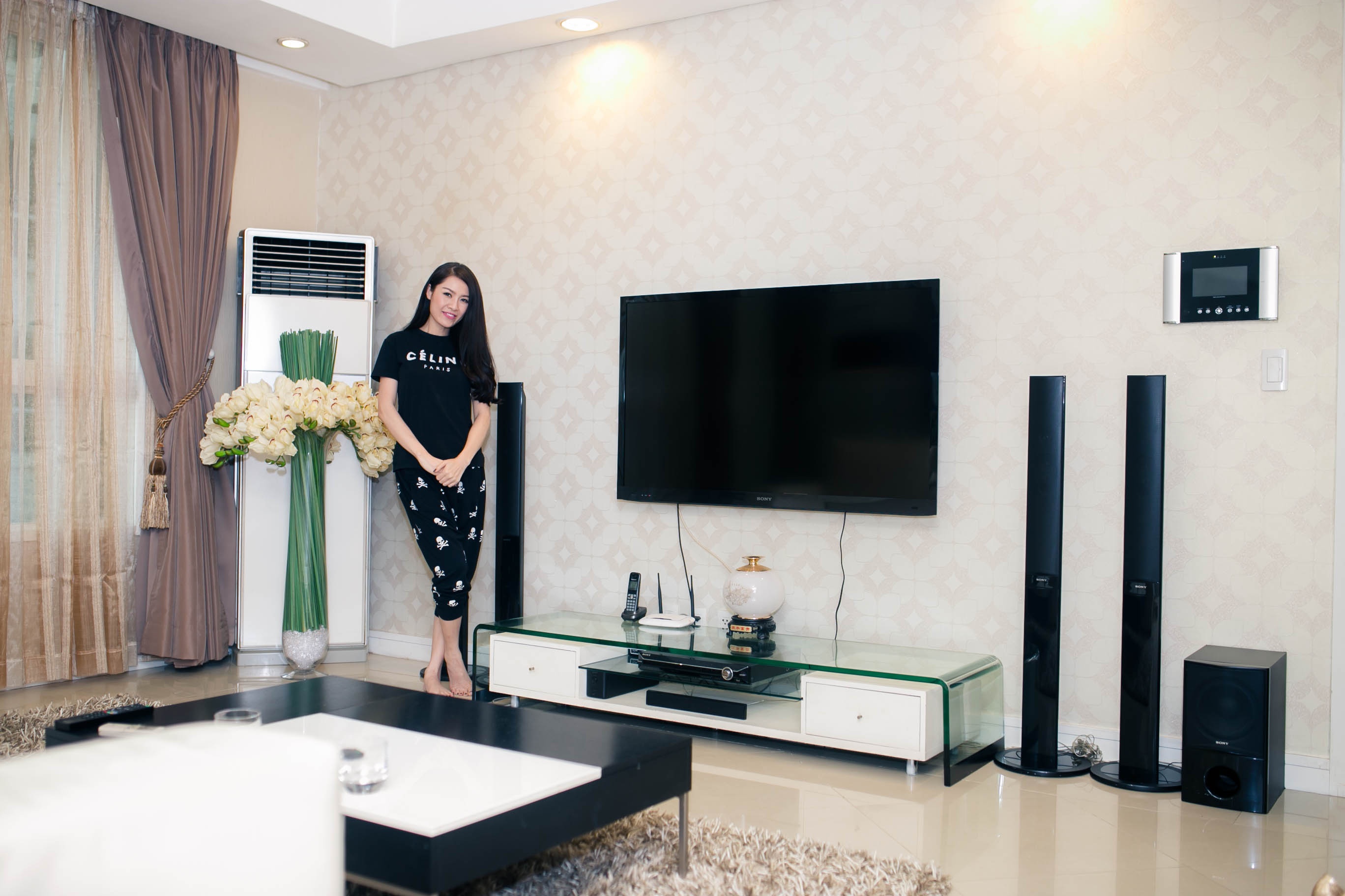 | Do công việc di chuyển nhiều giữa Hà Nội và TP.HCM, Quế Vân tậu riêng một căn hộ tại Sài Gòn để thuận tiện việc đi lại, cố định cuộc sống. Hiện cô sống ở một căn chung cư cao cấp tại TP.HCM. Với căn hộ có diện tích vừa phải, nữ chủ nhân chăm chút bằng cách sắp xếp nội thất hiện đại, sang trọng với gam màu trắng chủ đạo. Tủ phụ kiện thời trang được đặt trong góc phòng riêng và bày trí rất gọn gàng. |