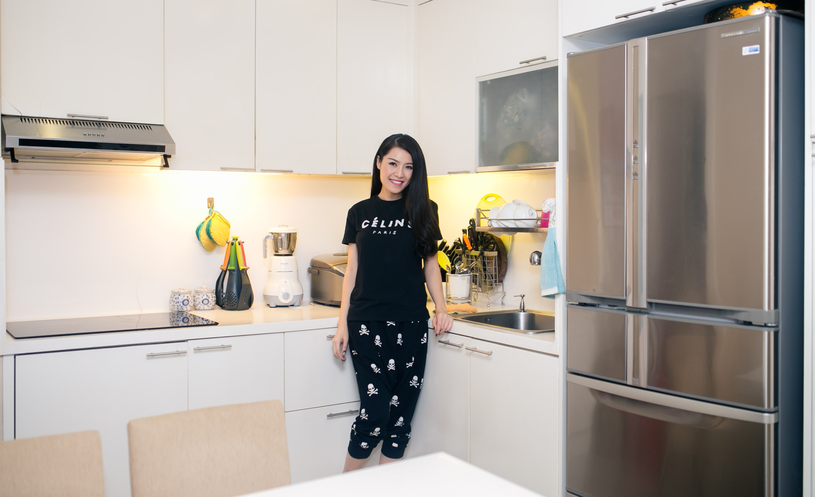 | Bếp là khu vực Quế Vân yêu thích nhất trong căn hộ. Nơi cô và bạn bè có thể quây quần, tụ họp vào dịp cuối tuần, lễ tết. |